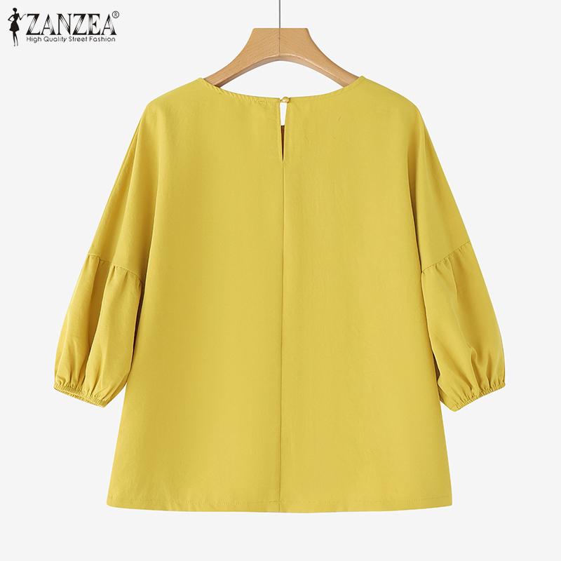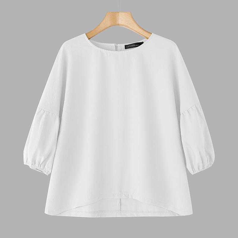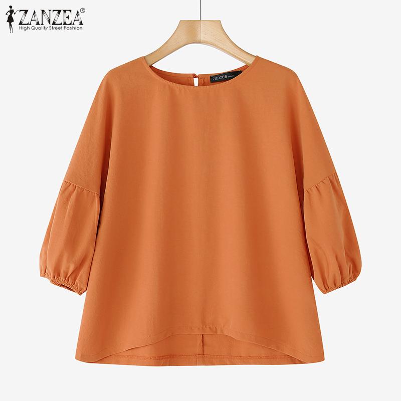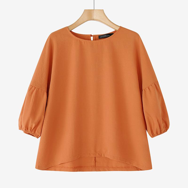 ZANZEA Женская повседневная блузка с круглым вырезом, свободного кроя, с рукавами 3/4, однотонная