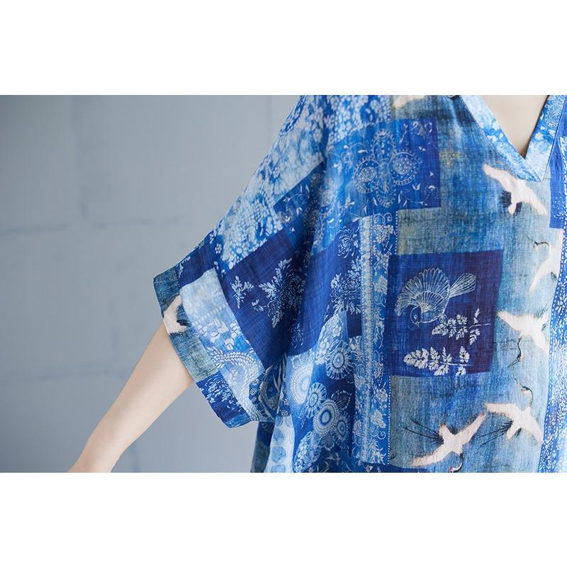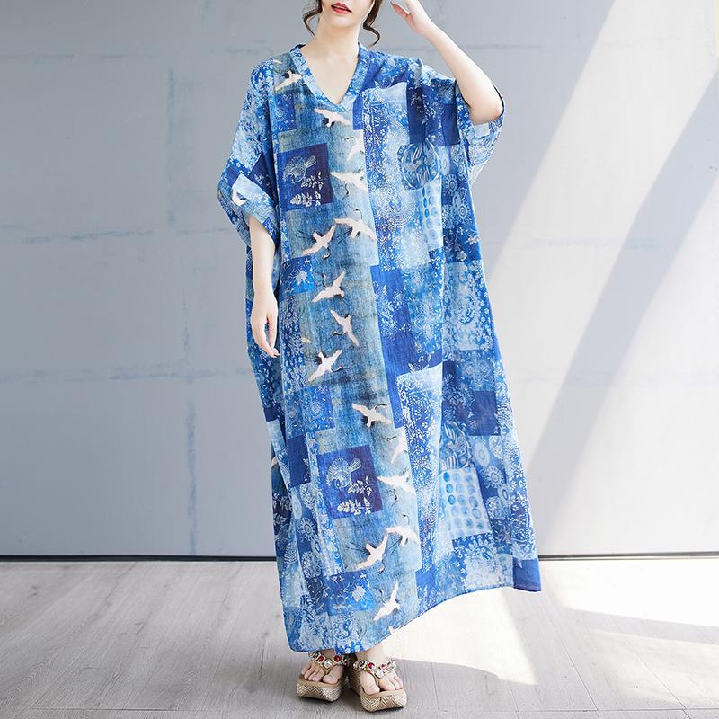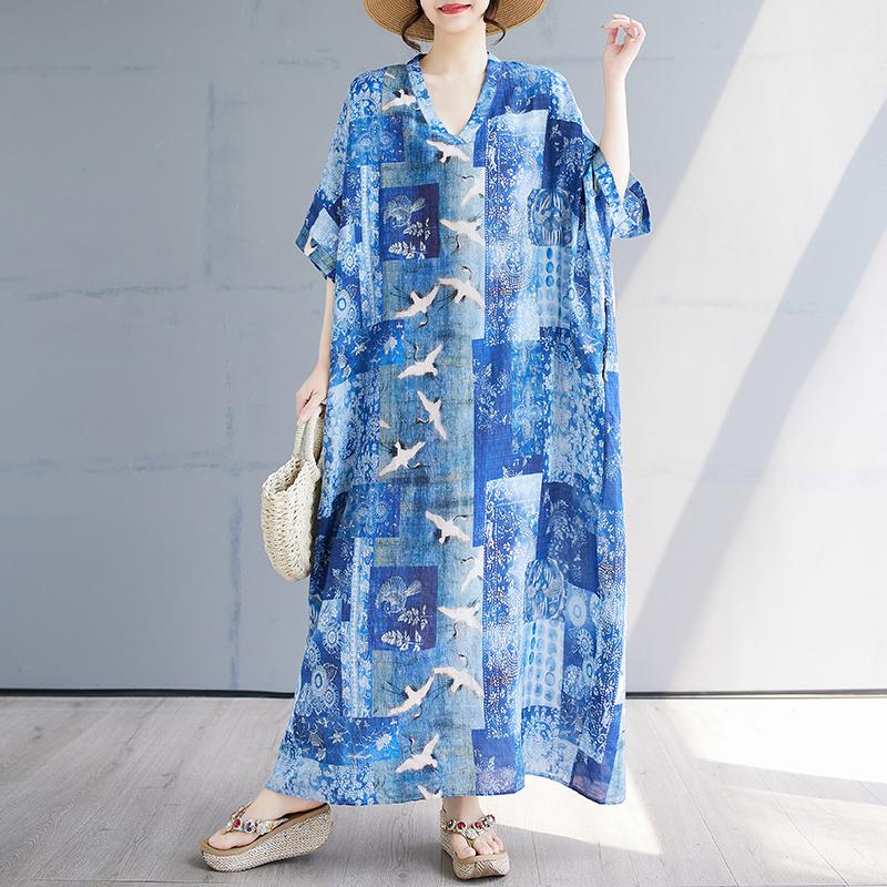 DIMANAF 2025 Летнее платье больших размеров Базовое женское повседневное свободное синее винтажное новое длинное платье оверсайз макси