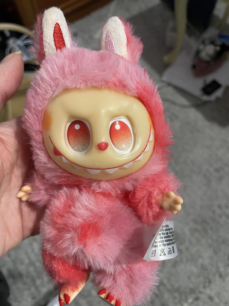 Это самый ужасный лабубу , который мы видели . У нас много лабубу , но это просто ужас . Лицо страшное и злобное , материал вообще не соответствует, размер меньше обычного , из ноги выпал и потерялся зайчик. Привезли без коробки в распакованном целлофане . В общем как вам не стыдно такое продавать ребенку ?!