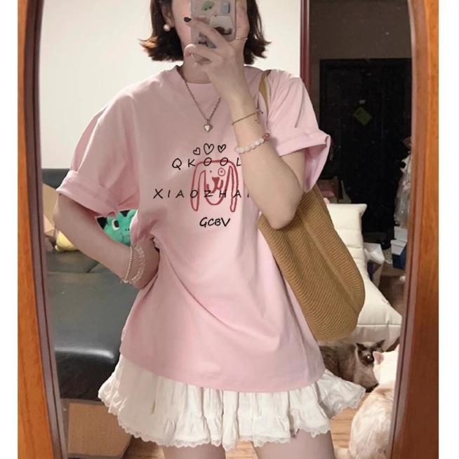 Летняя повседневная свободная розово-белая футболка, симпатичная футболка с буквенным принтом для молодых девушек, футболки с короткими рукавами для женщин, футболка в стиле Харадзюку, уличные топы y2k — купить товар онлайн с бесплатной доставкой по всему миру!