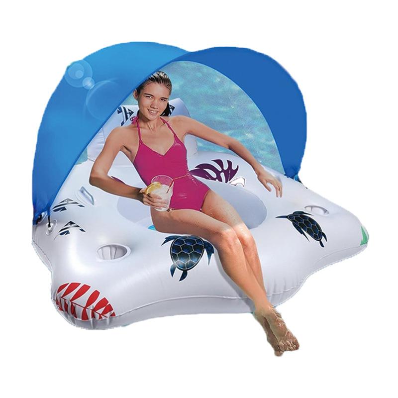 Надувной шезлонг для бассейна в форме кленового листа, U-образный балдахин с сетчатой спинкой и дизайном с отверстиями