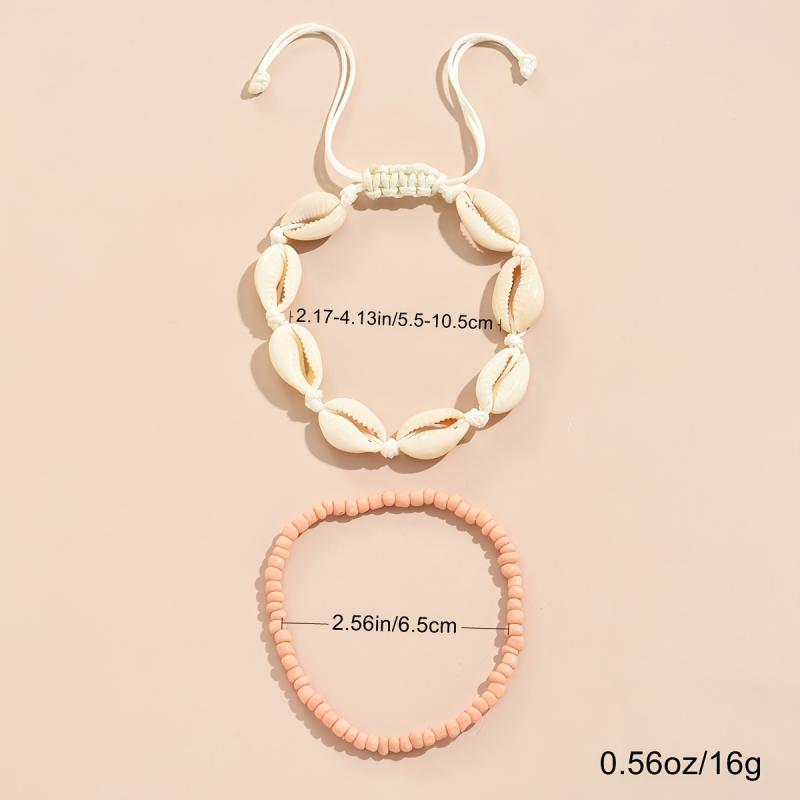 2 шт. Летний пляжный браслет на щиколотку, ручная работа, регулируемые украшения из стеклянных бусин в виде ракушек для мужчин и женщин, складные аксессуары для отдыха в стиле бохо