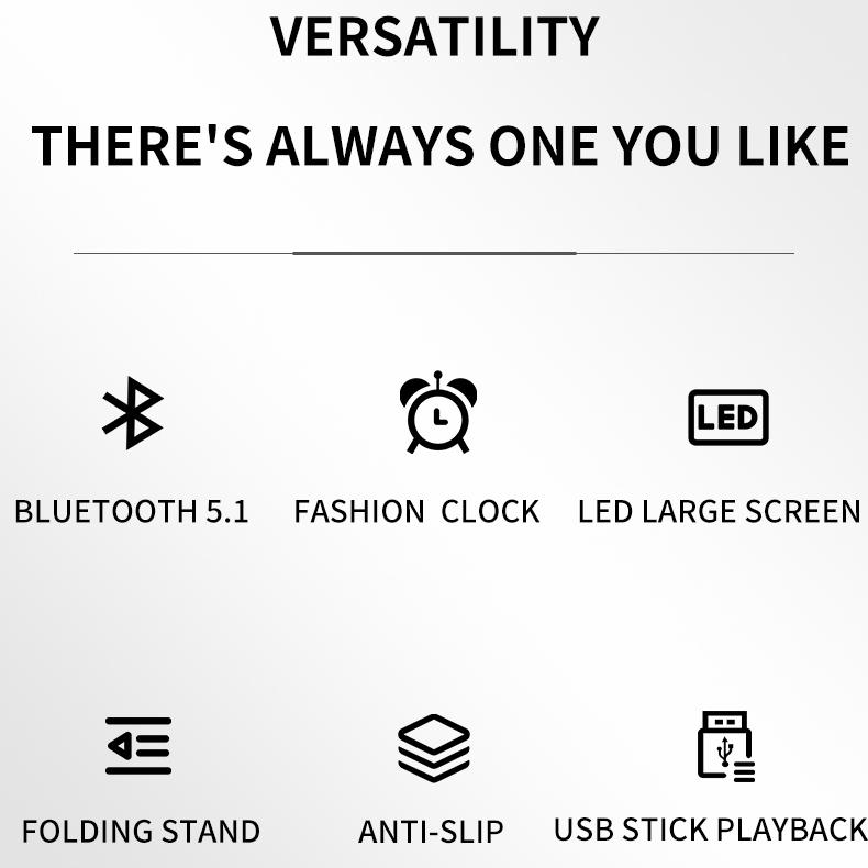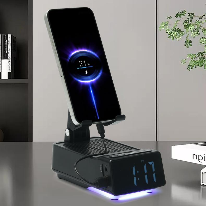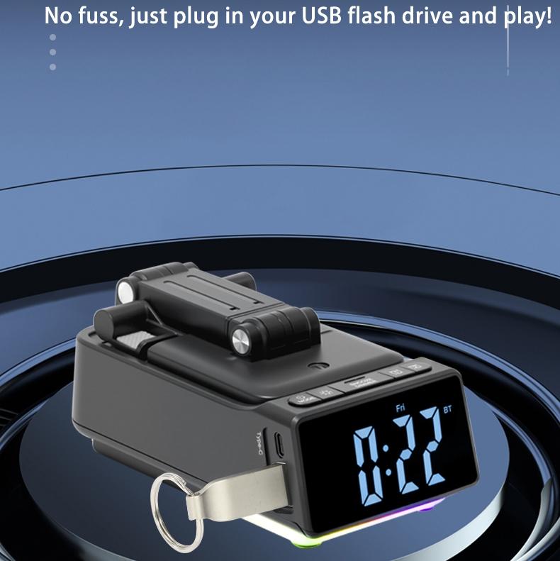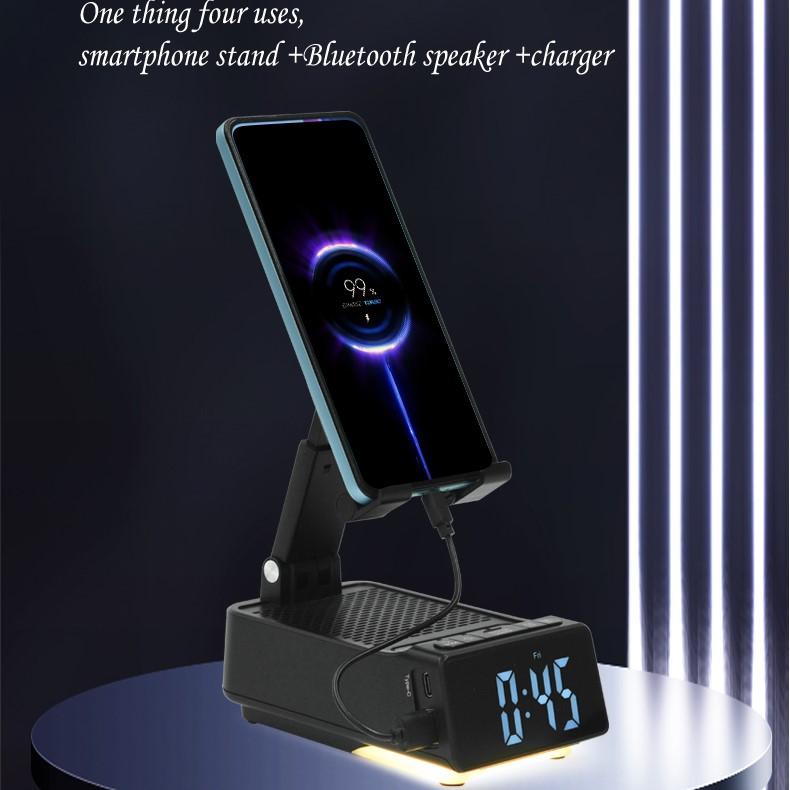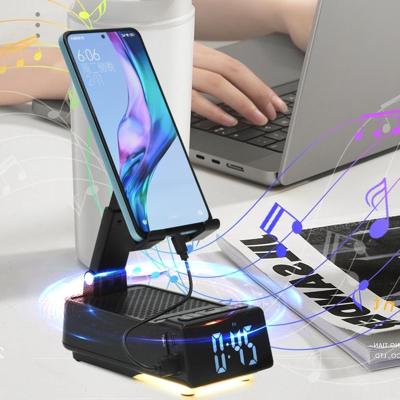 Будильник Bluetooth-динамик Планшетный мобильный телефон Подставка вращающаяся подъемная складная портативная зарядка Банк Светодиодный Цветной фонарь U-дисковый проигрыватель