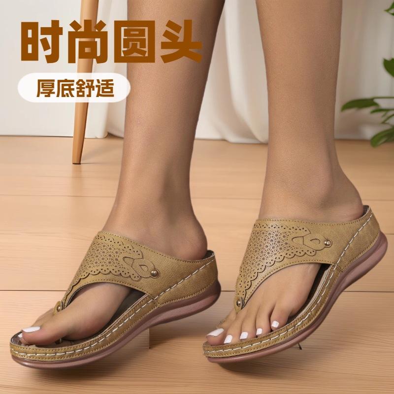European and American large size solid color 2025 summer new round head thick bottom fashion casual outer wear herringbone sandals women
