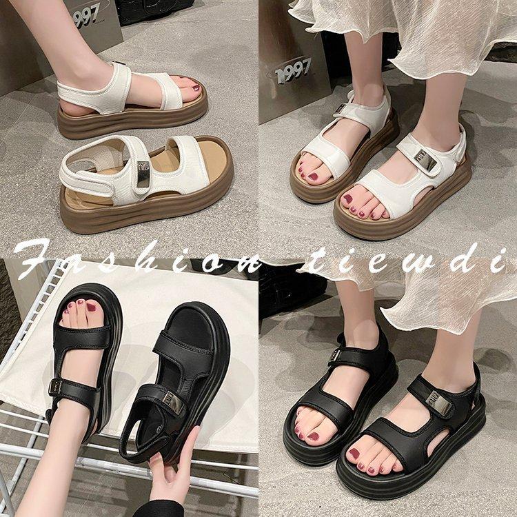 Босоножки на платформе женские весна-лето 2025 новые универсальные наступающие на дерьмо фея с юбкой римские сандалии на липучках