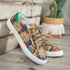 2024 г., импортные товары, новые, большого размера, на шнуровке, цветные, низкие, женские, этнические, в стиле граффити, ленивые, парусиновые, на плоской подошве, одиночные туфли