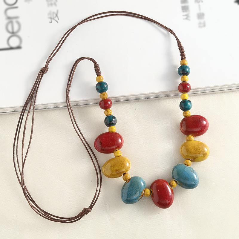 Винтажное керамическое длинное ожерелье ручной работы с регулируемой длиной в богемном стиле для женщин