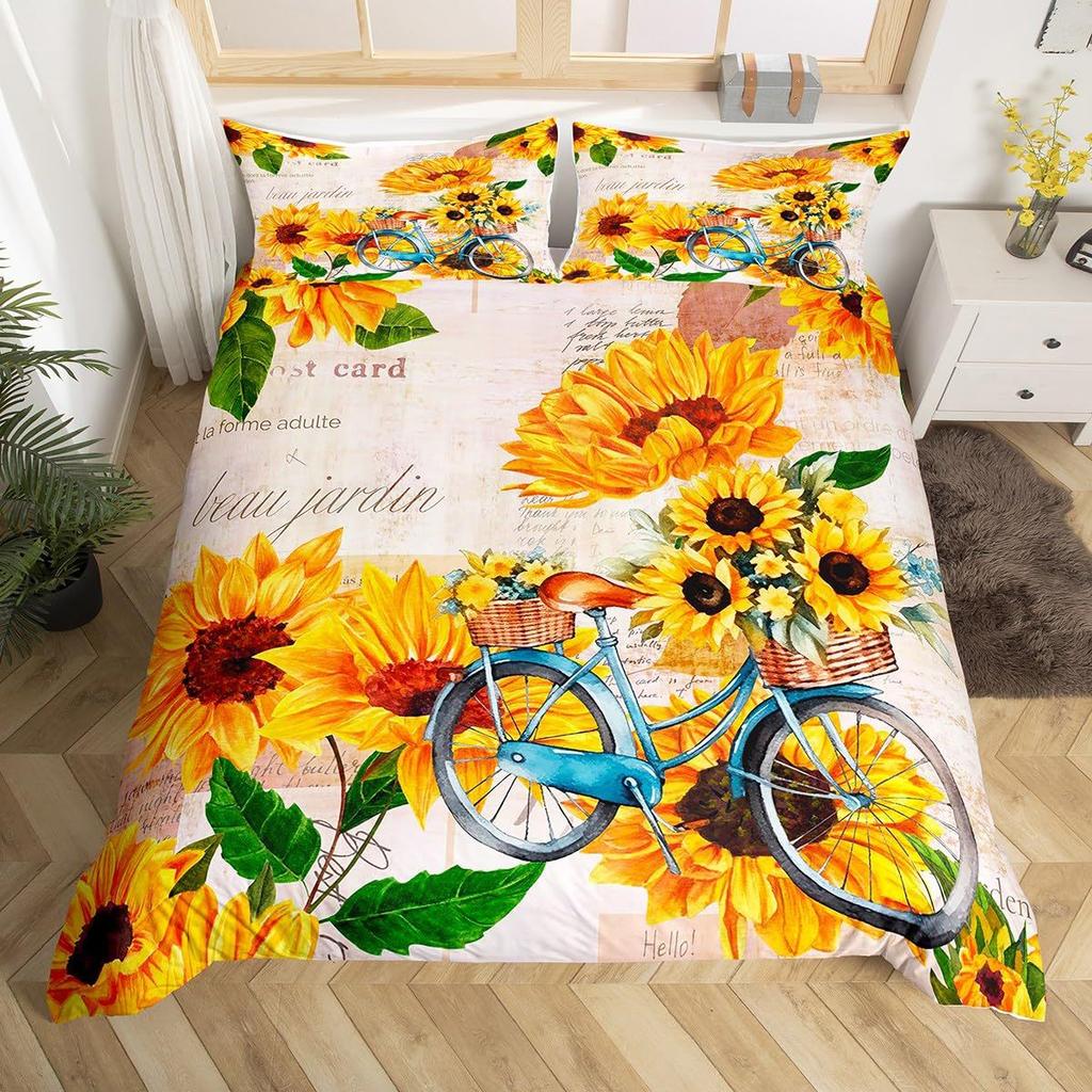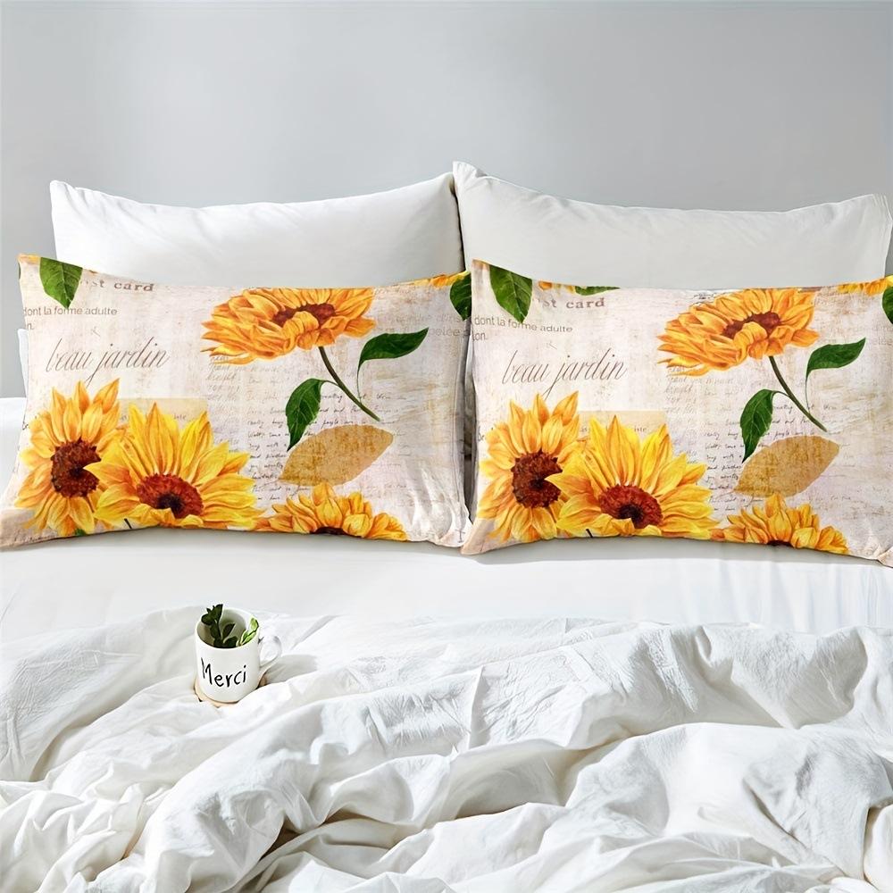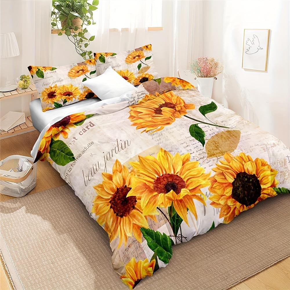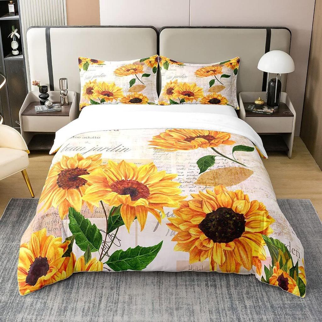 Винтажный пододеяльник с принтом подсолнухов для спальни, общежития. Винтажный постельный комплект, набор из трех предметов.