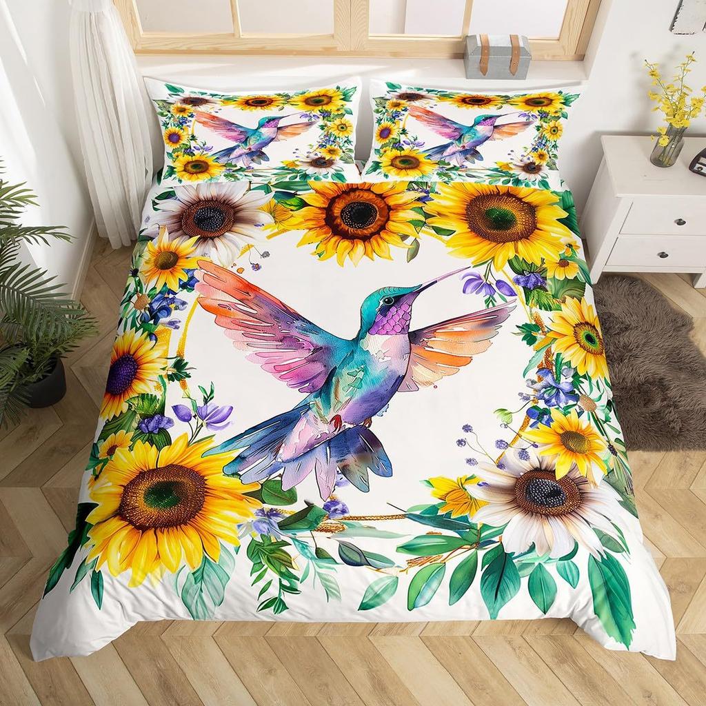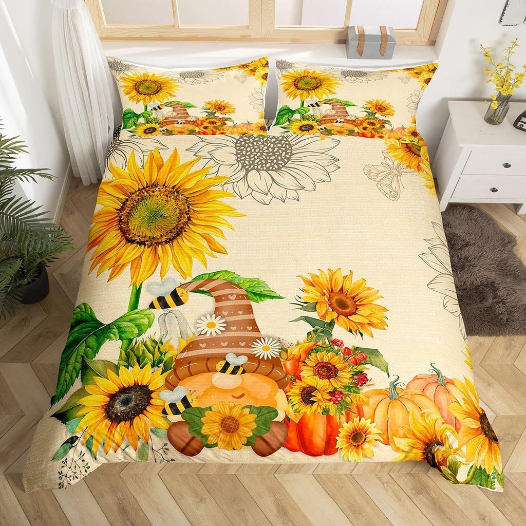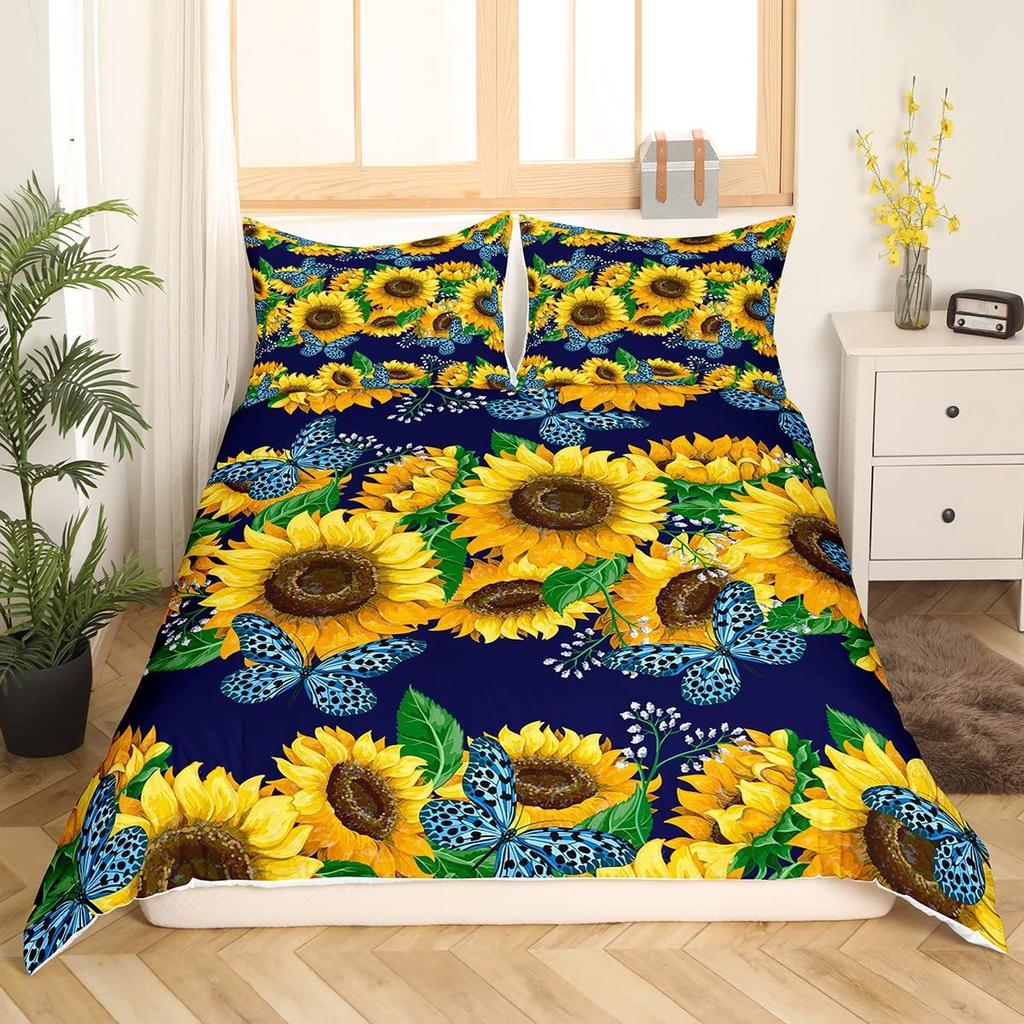 Винтажный пододеяльник с принтом подсолнухов для спальни, общежития. Винтажный постельный комплект, набор из трех предметов.