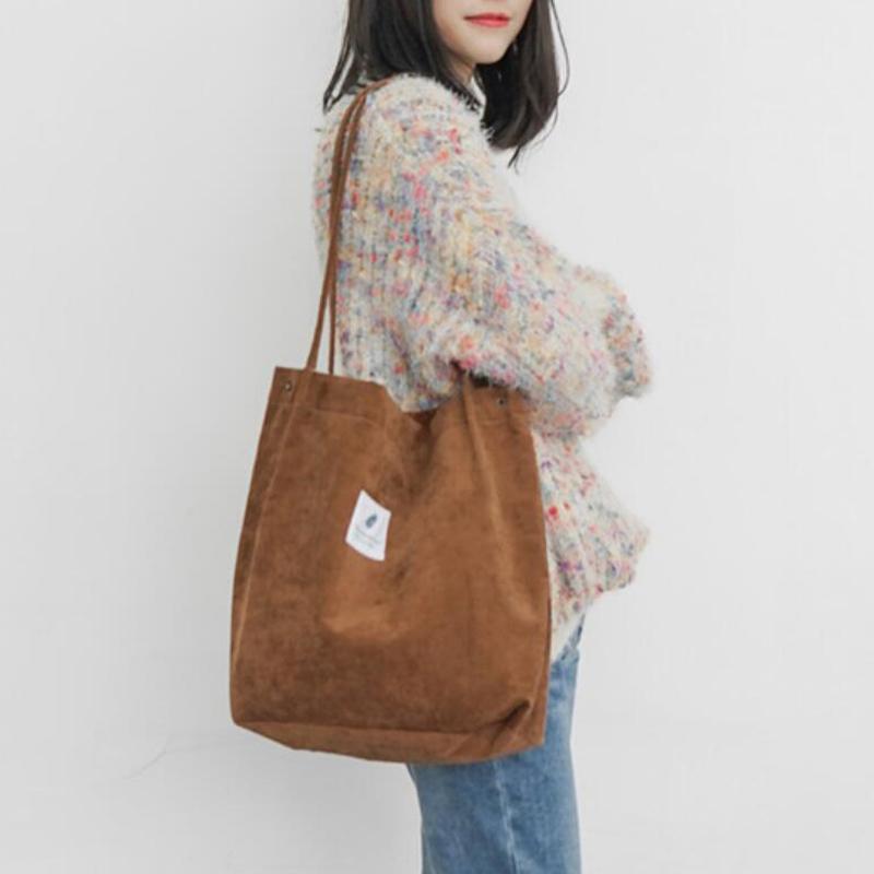 Простая студенческая сумка на плечо, мягкая вельветовая повседневная сумка-шоппер, женская сумка большой вместимости, женские сумки через плечо подмышками