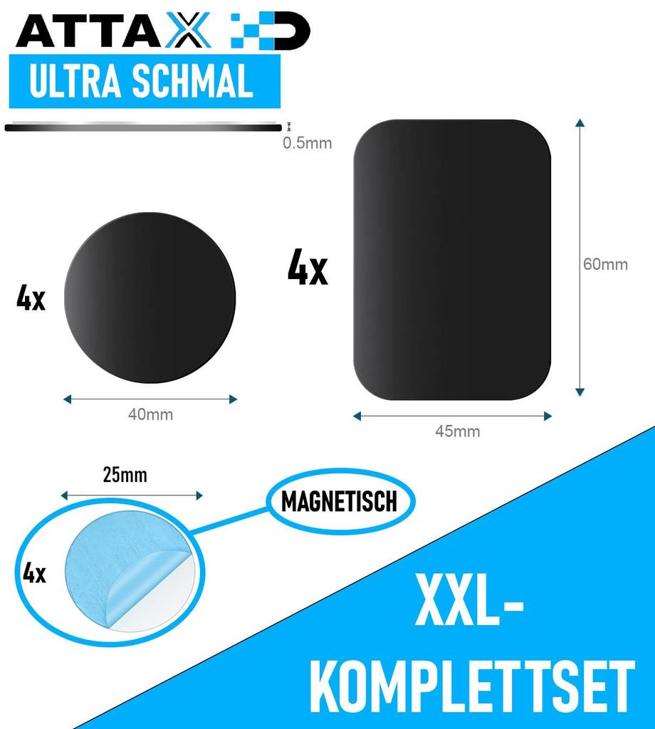Благодаря фирменной двухсторонней клейкой ленте металлические пластины ATTAX надежно держатся на месте.. Вы можете полностью положиться на тот факт, что, например,. Ваш телефон надежно удерживается во время вождения и не выскальзывает.