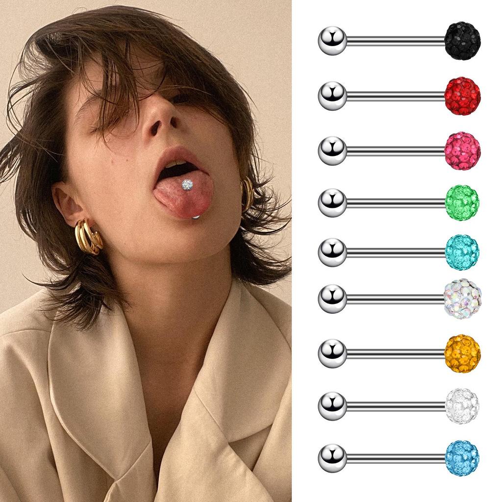 Новая штанга для языка из нержавеющей стали с цветными бриллиантовыми шариками