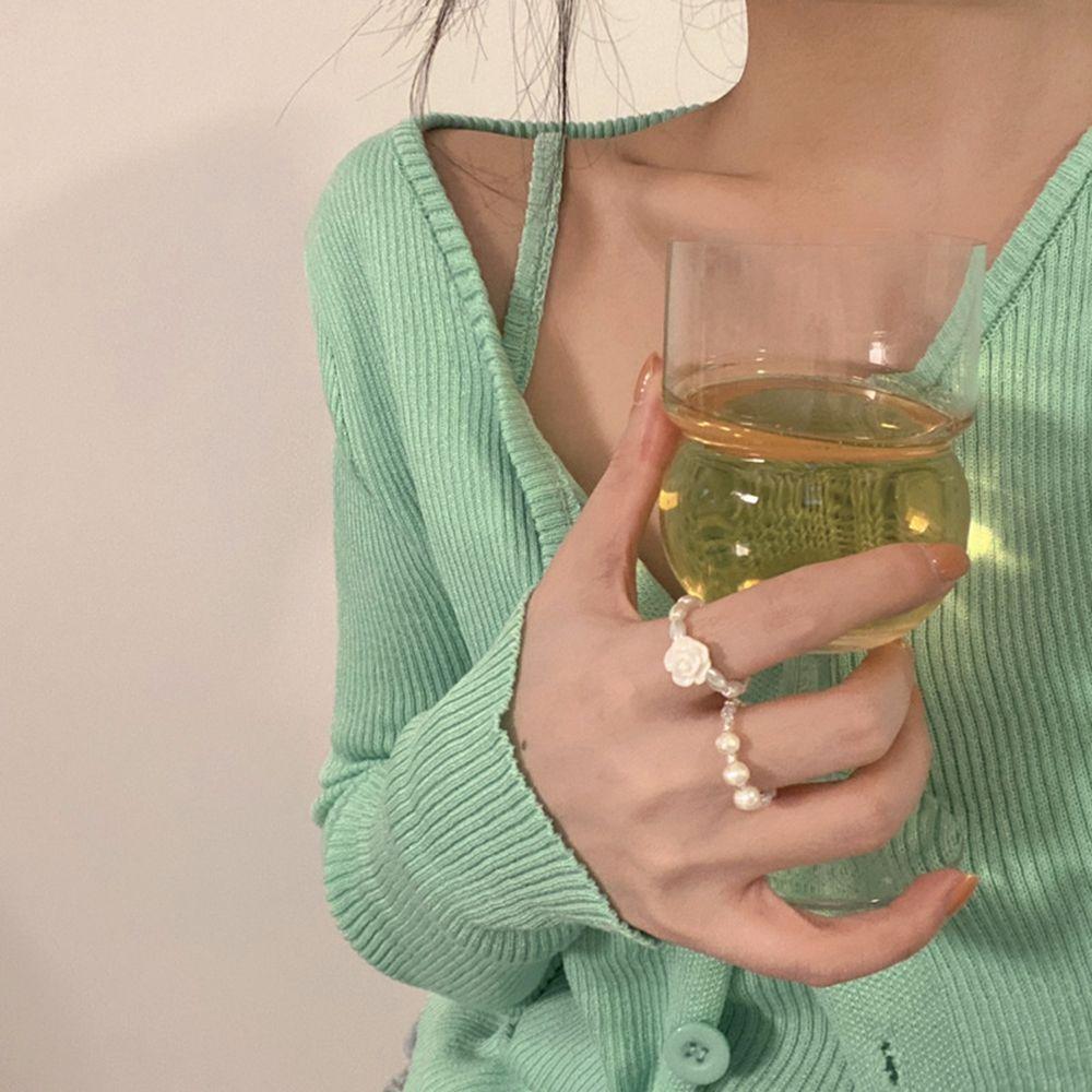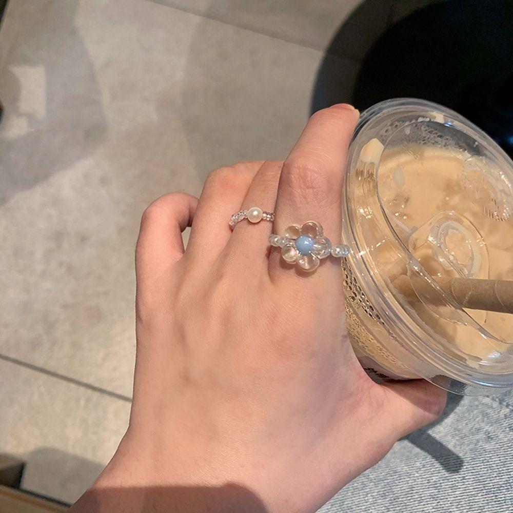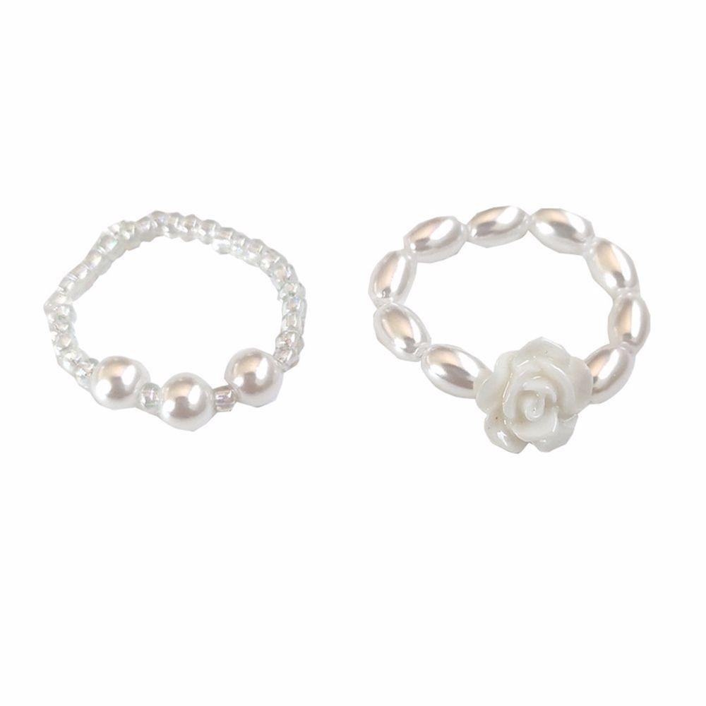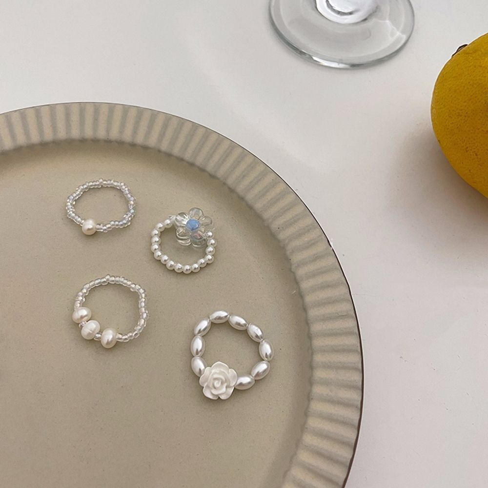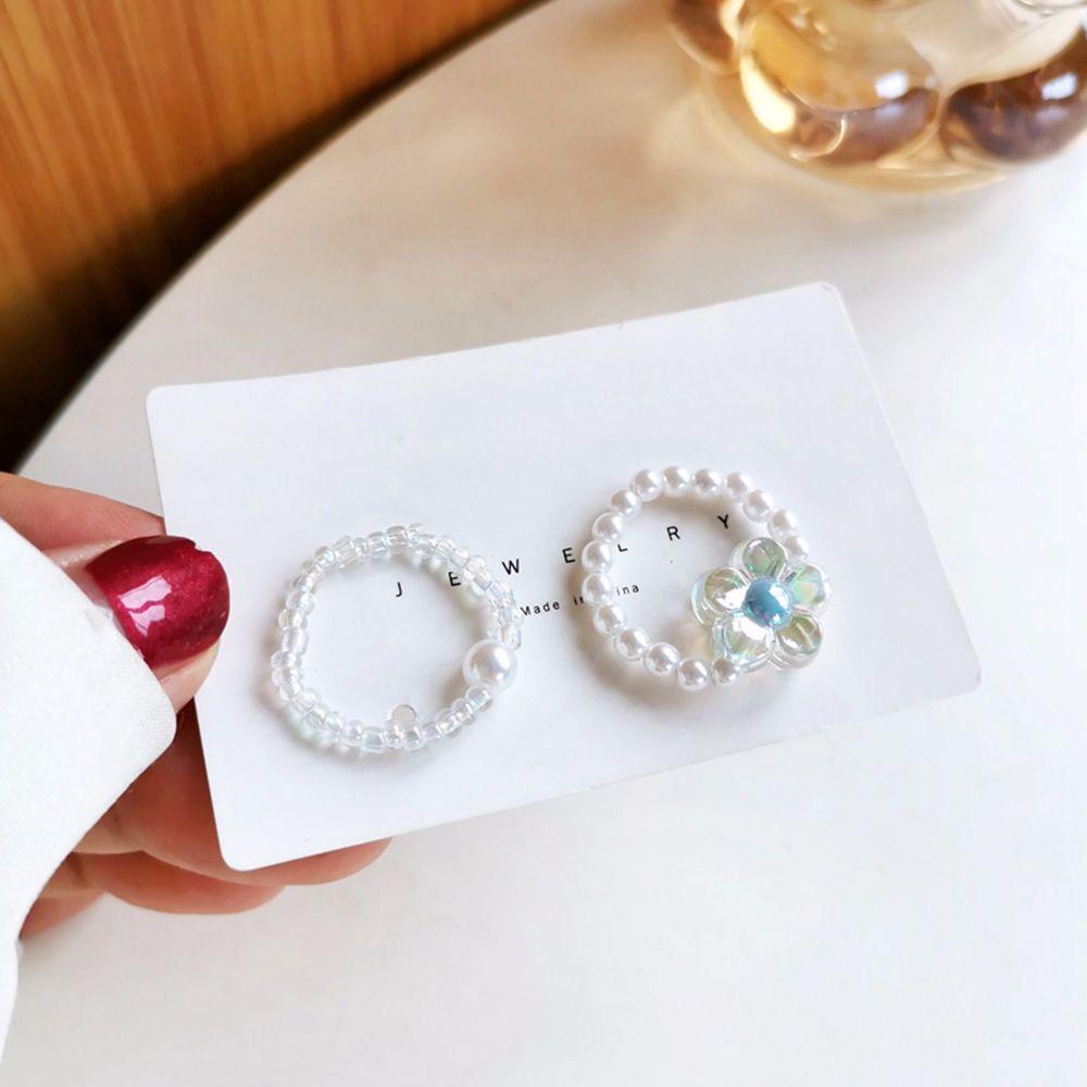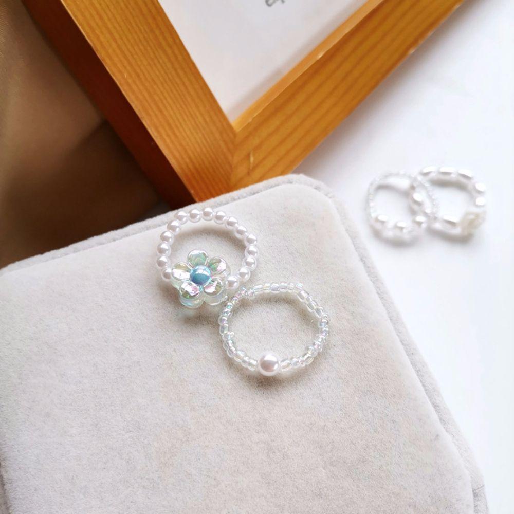 Милое винтажное кольцо с бусинами для девочек, индивидуальное кольцо на указательный палец, модные ювелирные изделия, набор колец с цветком и жемчугом