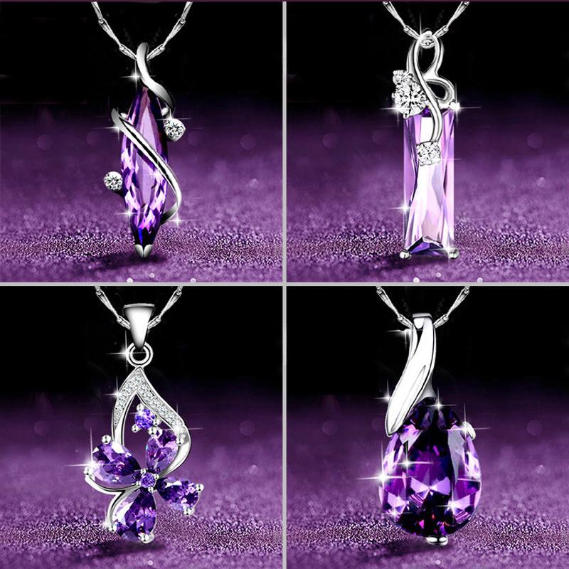 Ожерелье с аметистом и четырехлистным клевером, посеребренное 925 пробы - короткая женская подвеска на ключицу — купить товар онлайн с бесплатной доставкой по всему миру!