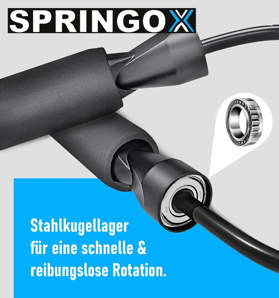 Наш высококачественный шарикоподшипник обеспечивает сверхлегкое вращение. Благодаря этому вы можете достичь высокой частоты ударов, с которой вам доступны Дабл и даже Трипл Андеры. Выведи свою тренировку на новый уровень с помощью скакалки SPRINGOX!