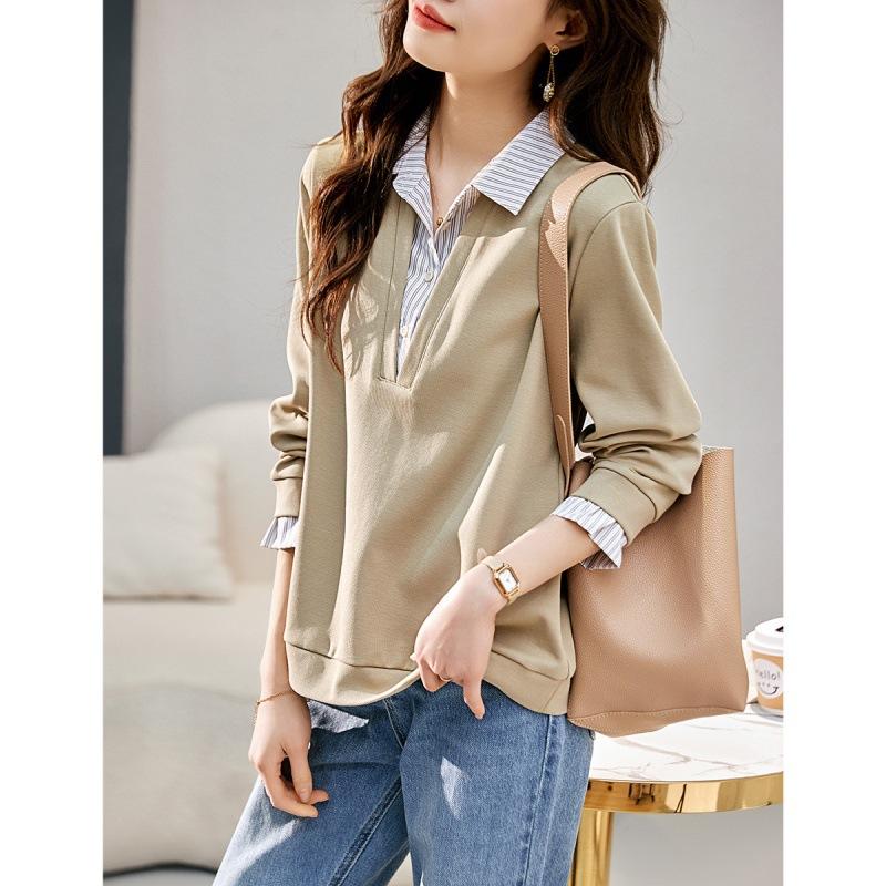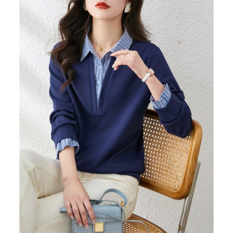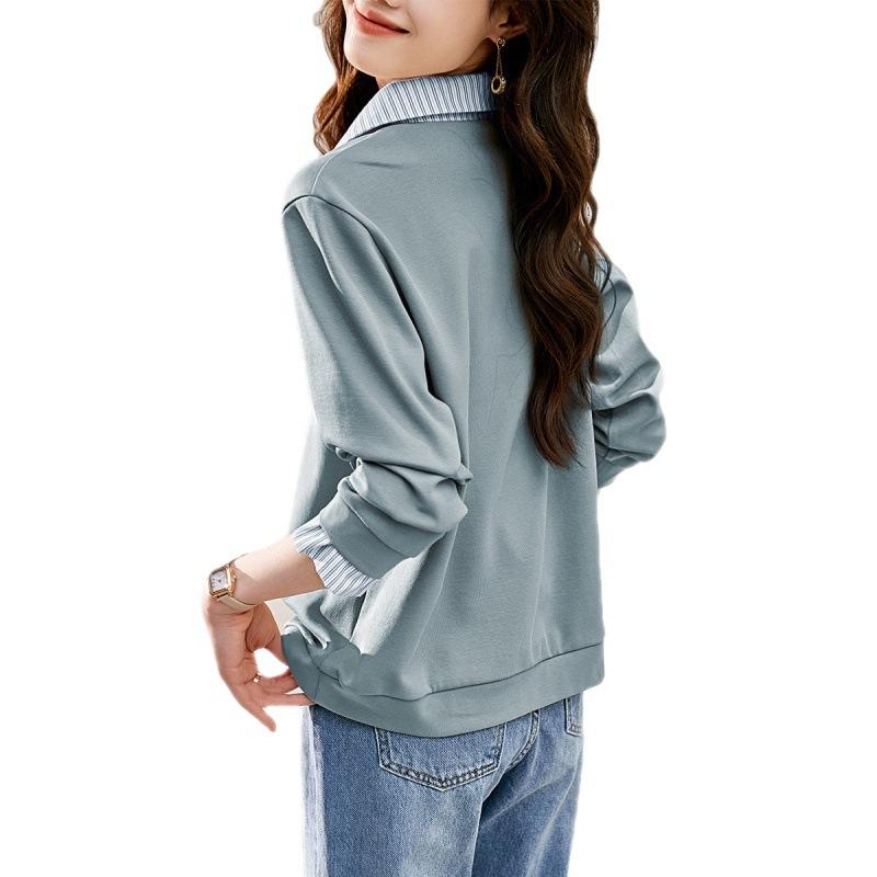 Поддельный двухсекционный полосатый контрастный свитшот осенний новый индивидуальный топ с лацканами