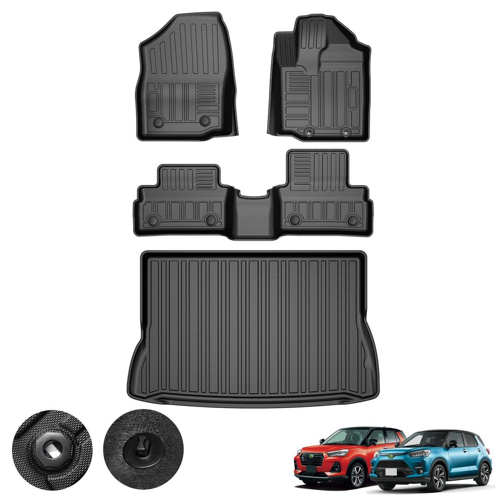 [Совместимые модели] Коврик Toyota Rise/Daihatsu Rocky. Совместим со всеми сортами: Тип A200A/210A, тип A200S/210S. Год выпуска: Ноябрь 2019 г. - настоящее время. Установить содержимое: 2 коврика в пол, 1 второй коврик, 1 коврик в багажник (всего 4 штуки). *Перед покупкой еще раз проверьте форму, модель и год на изображении.