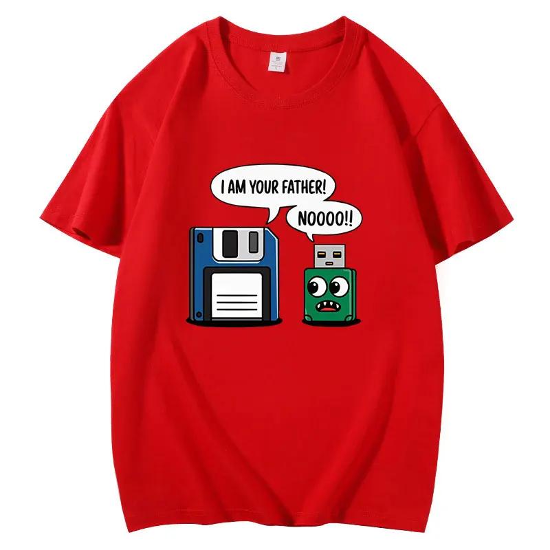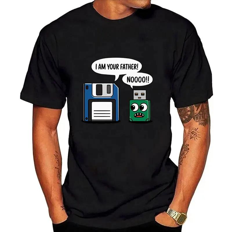 2025 Летняя мужская футболка с забавным рисунком, с коротким рукавом и круглым вырезом, с рисунком отца и сына, с рисунком дискеты, для мужчин