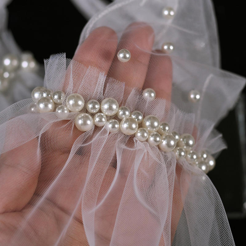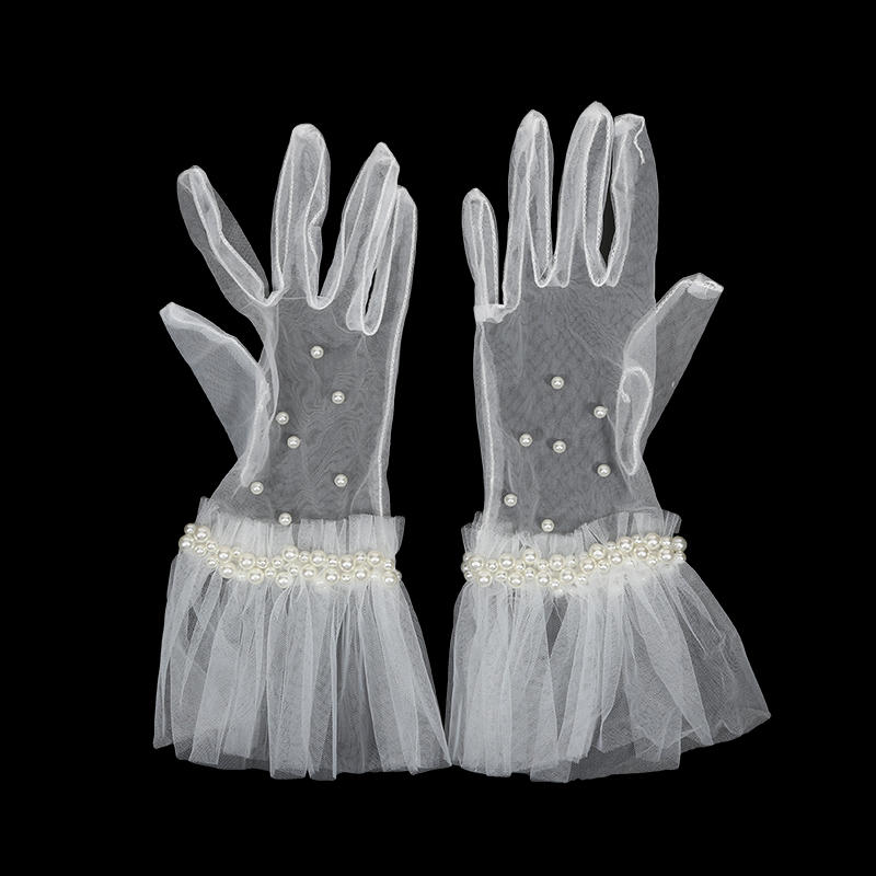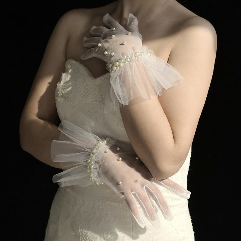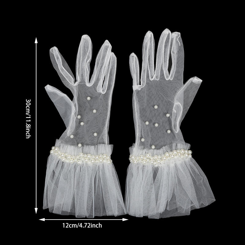 Женские элегантные плиссированные перчатки с жемчужным краем, свадебные короткие перчатки из тюля, перчатки для выпускного бала, перчатки для особых случаев