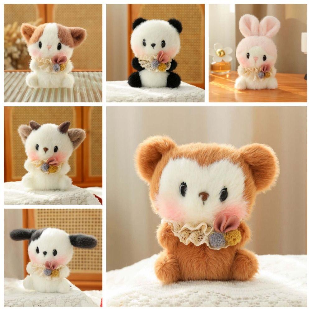 Soft Plush Dog Pendant Funny Cartoon Animal Keychain Creative Bear Doll Key Ring Children