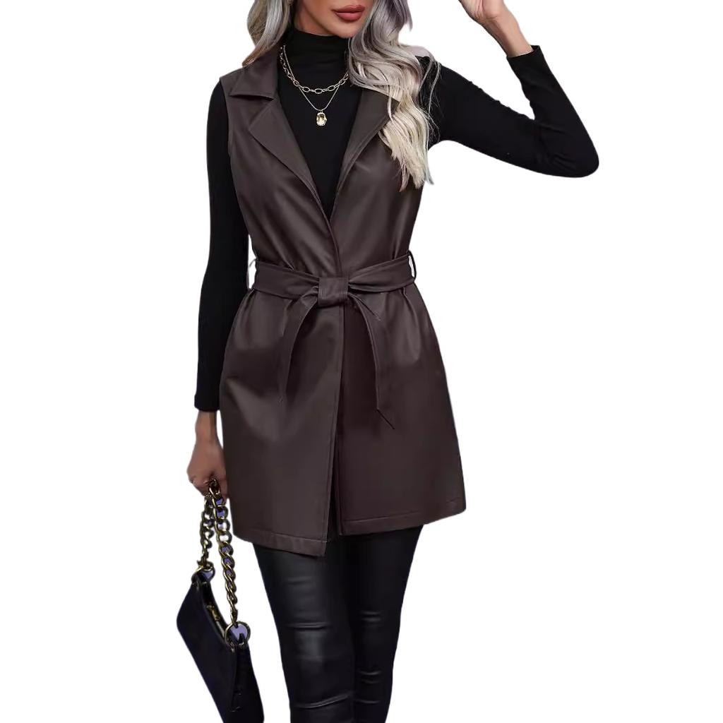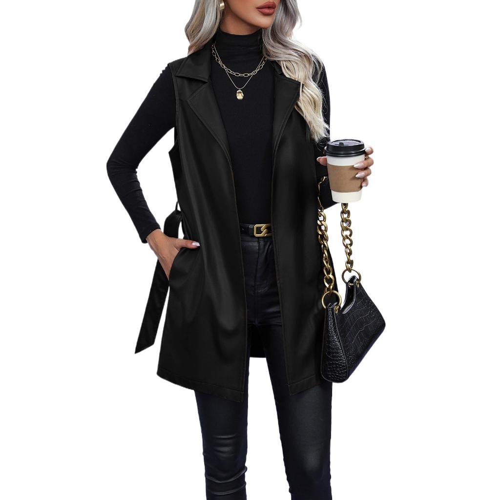 Женский жилет без рукавов, пиджак из искусственной кожи, женский жилет из искусственной кожи, большой размер