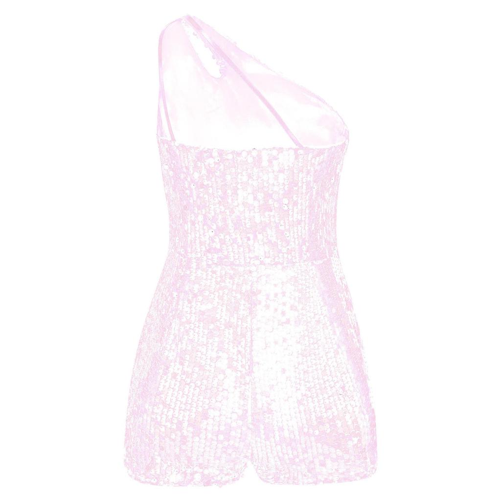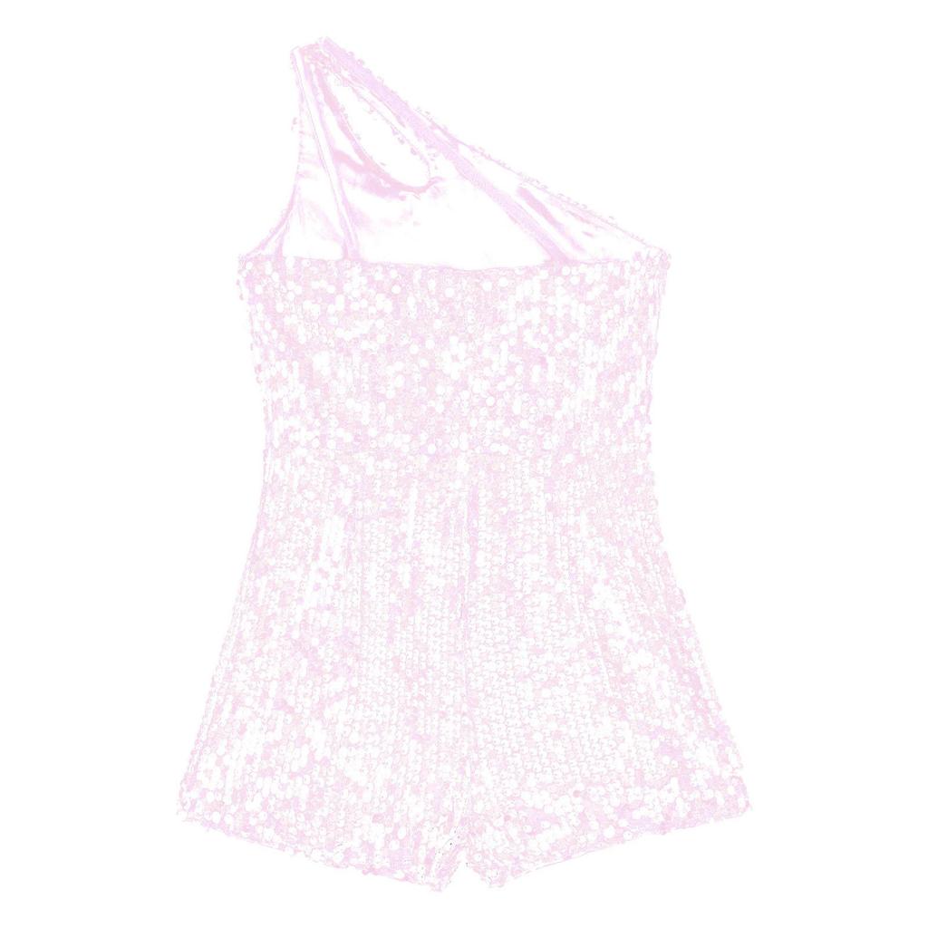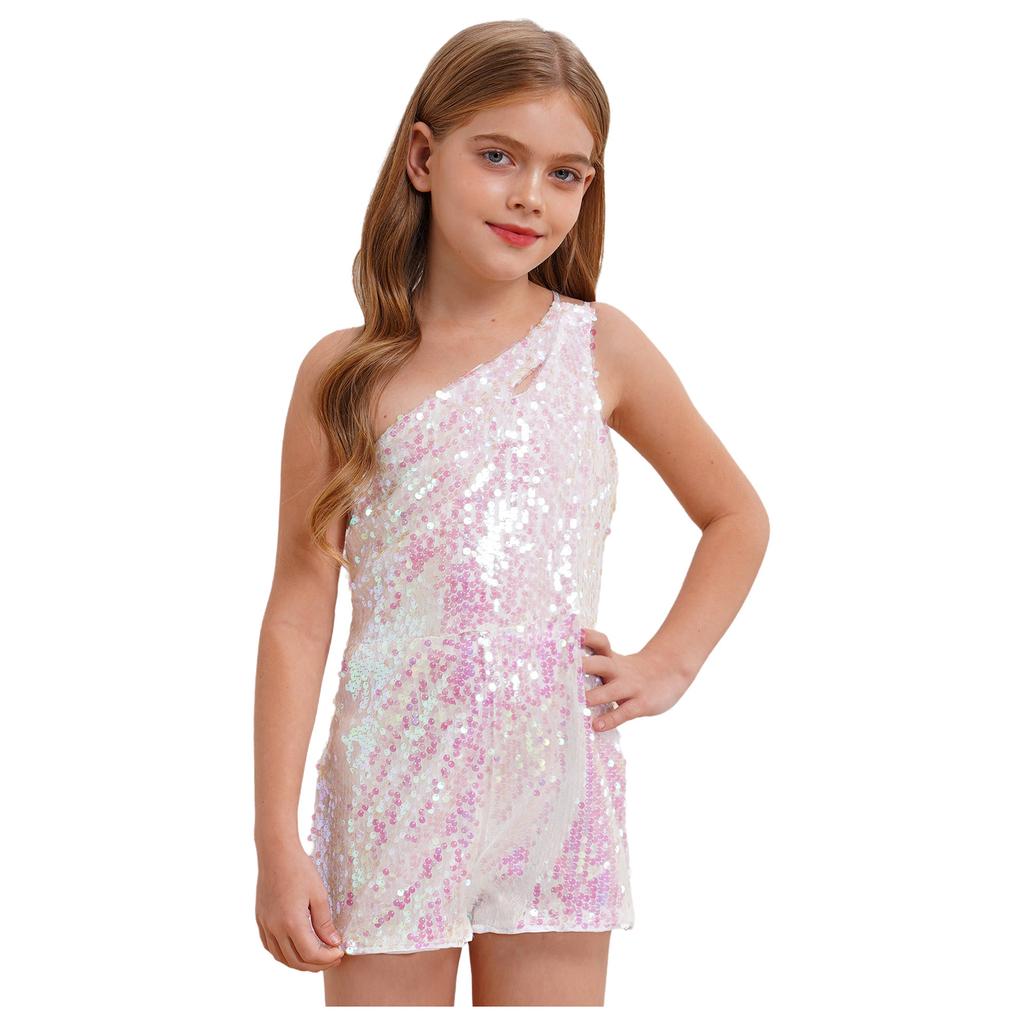 Детский Девочки Блестящий Комбинезон для Танца Ча-Ча на Одно Плечо с Вырезом-Замочной Скважиной Без Рукавов для Вечеринки