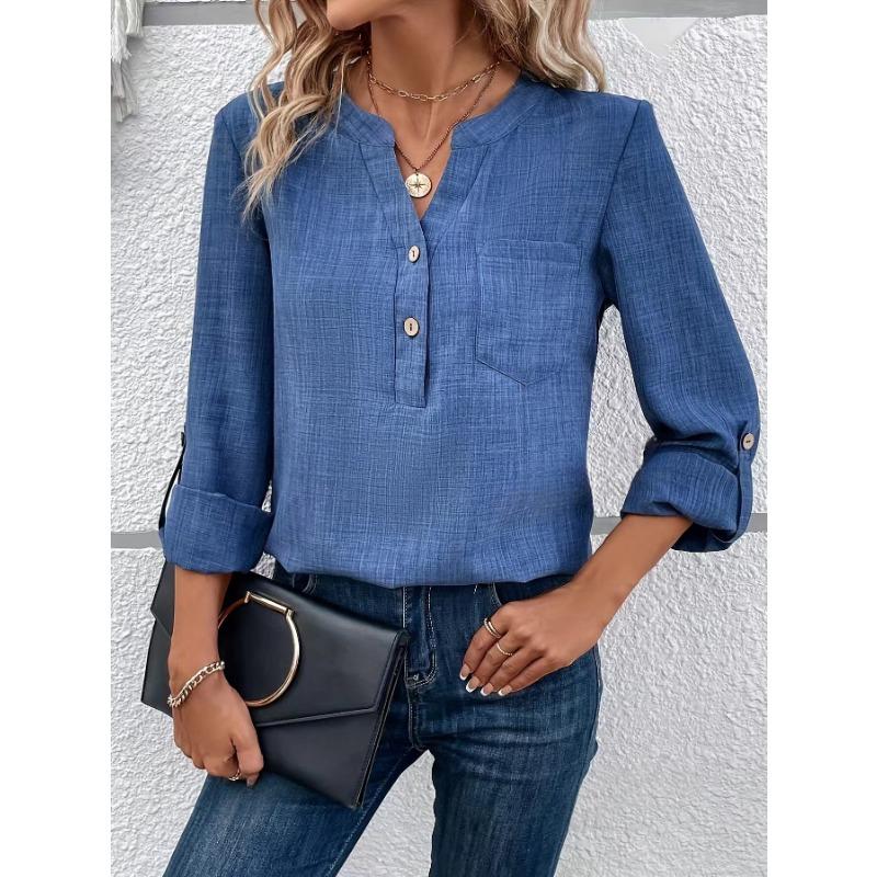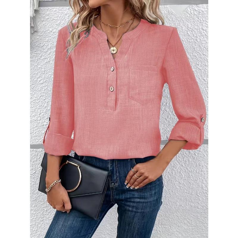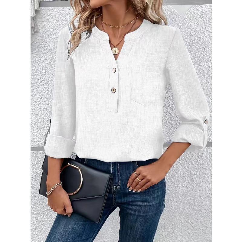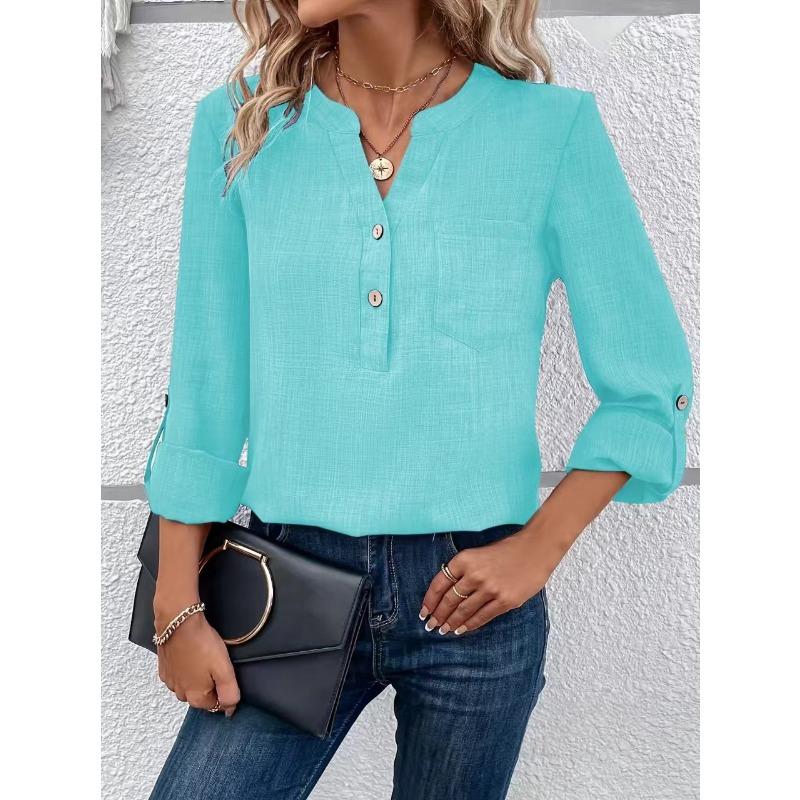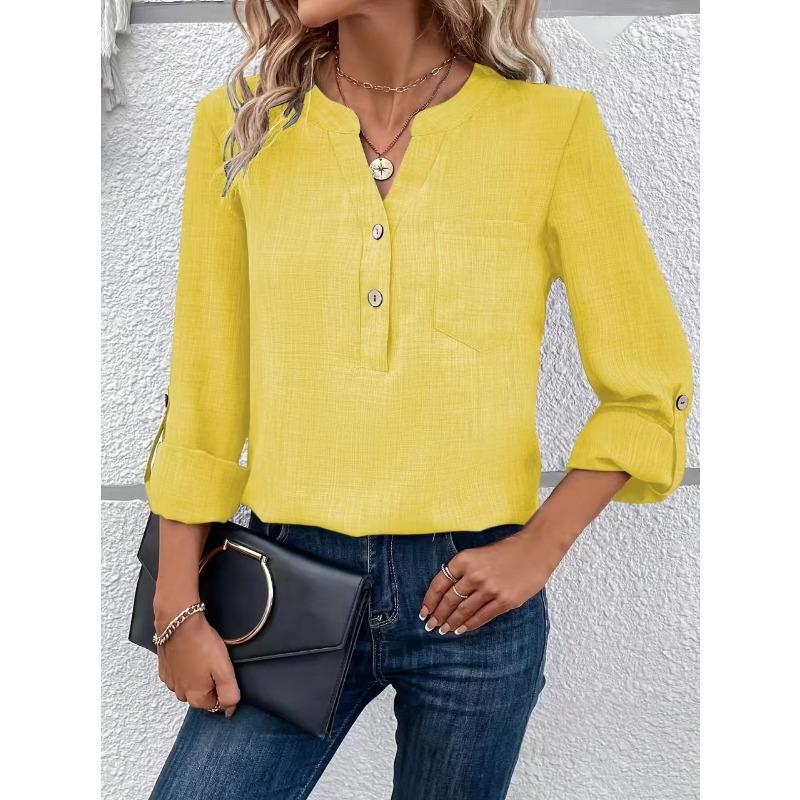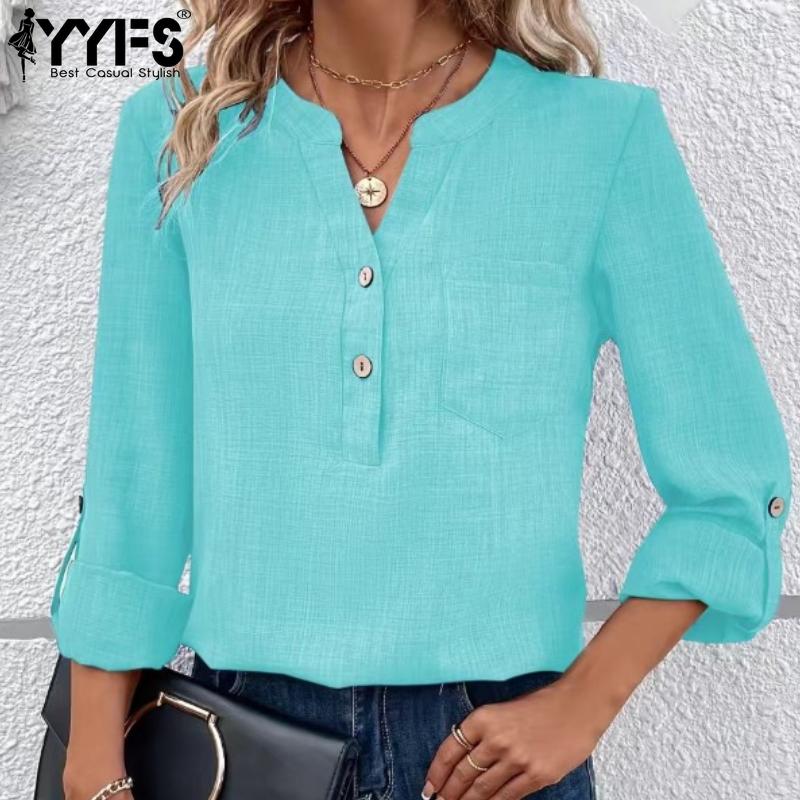 YYFS Женские модные повседневные весенне-осенние однотонные блузки и рубашки с v-образным вырезом и длинным рукавом с принтом