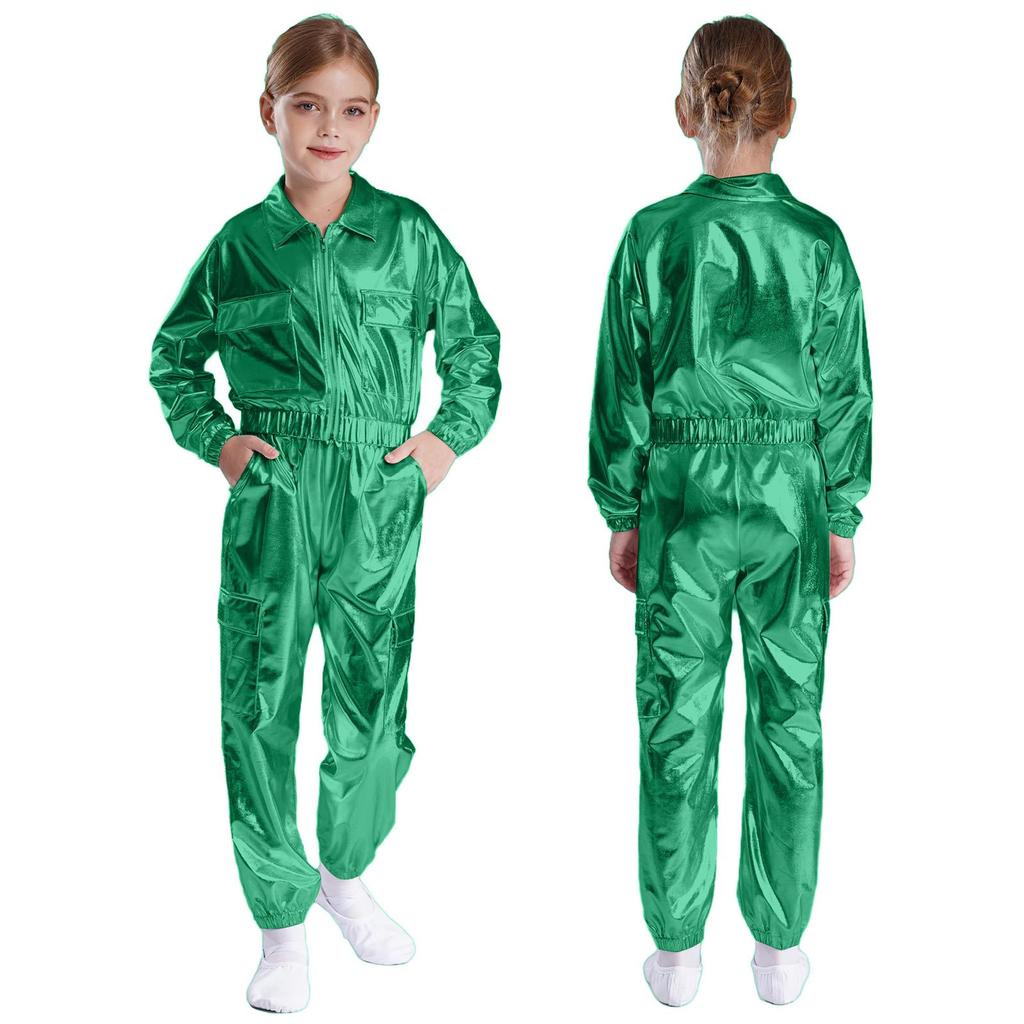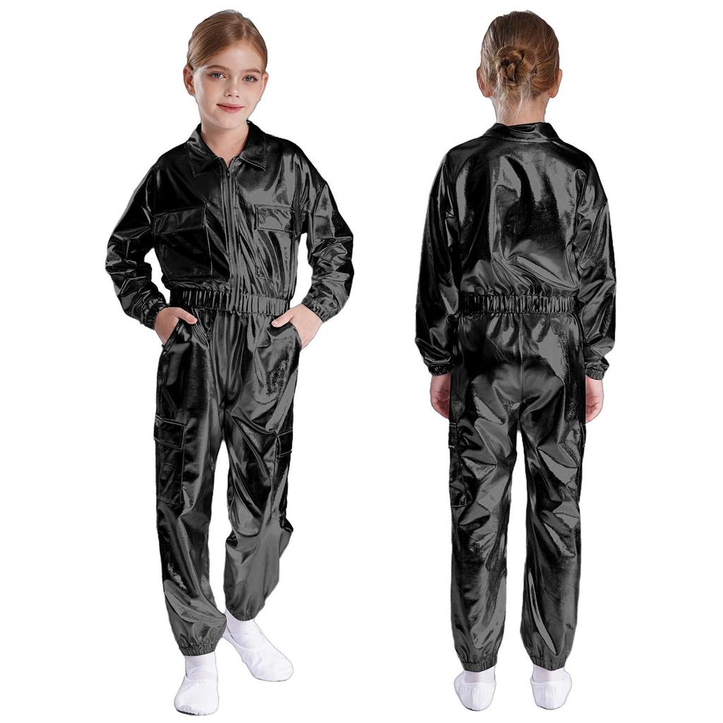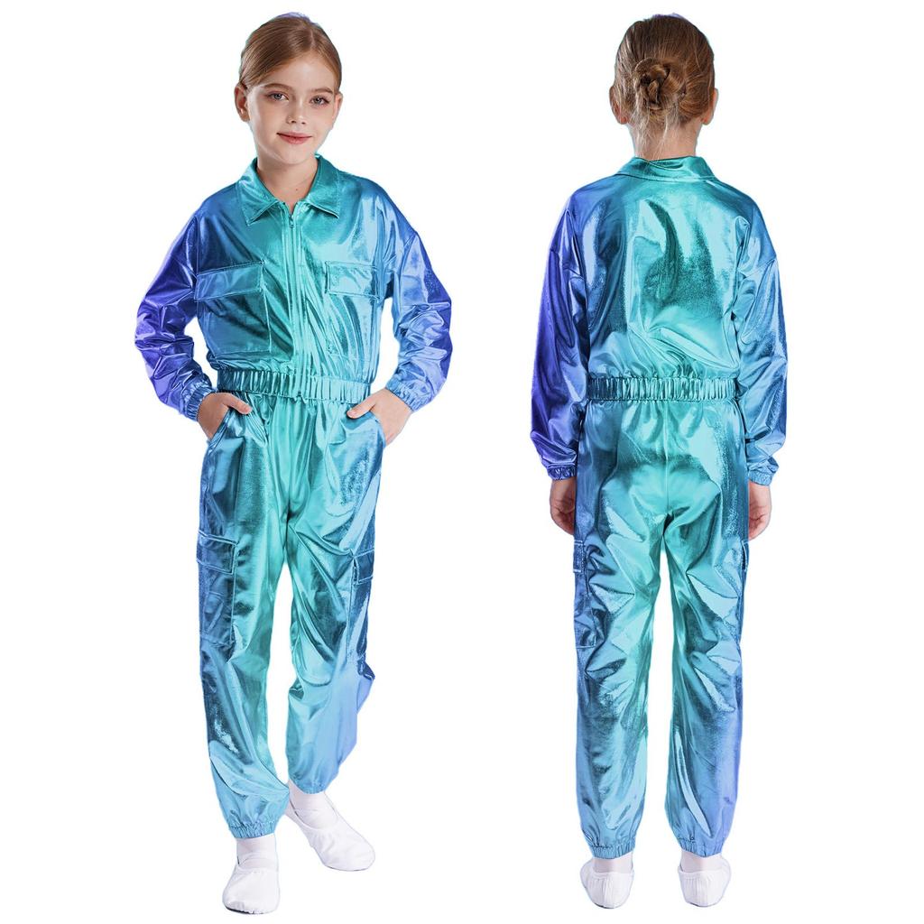 Детская блестящая куртка унисекс с металлическим оттенком, с длинными рукавами, с блестящими брюками, одежда для выступлений в стиле хип-хоп