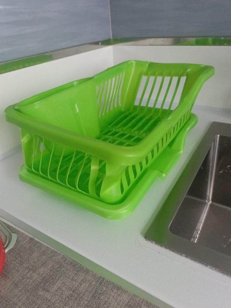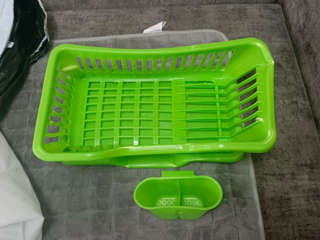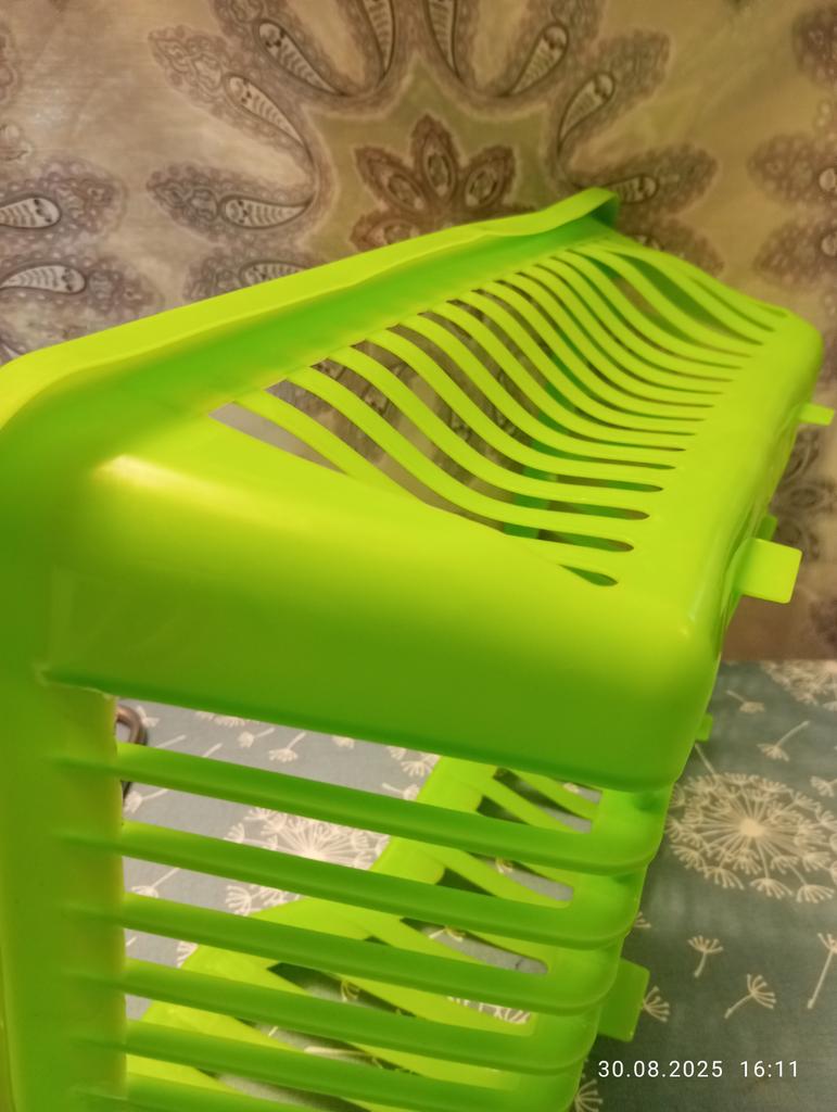 Очень удобная сушилка для посуды, пришла ровненькая, не мятая. Очень довольна, спасибо Джум и доставке. 🚚 Рекомендую, вода вся в раковину, удобно.