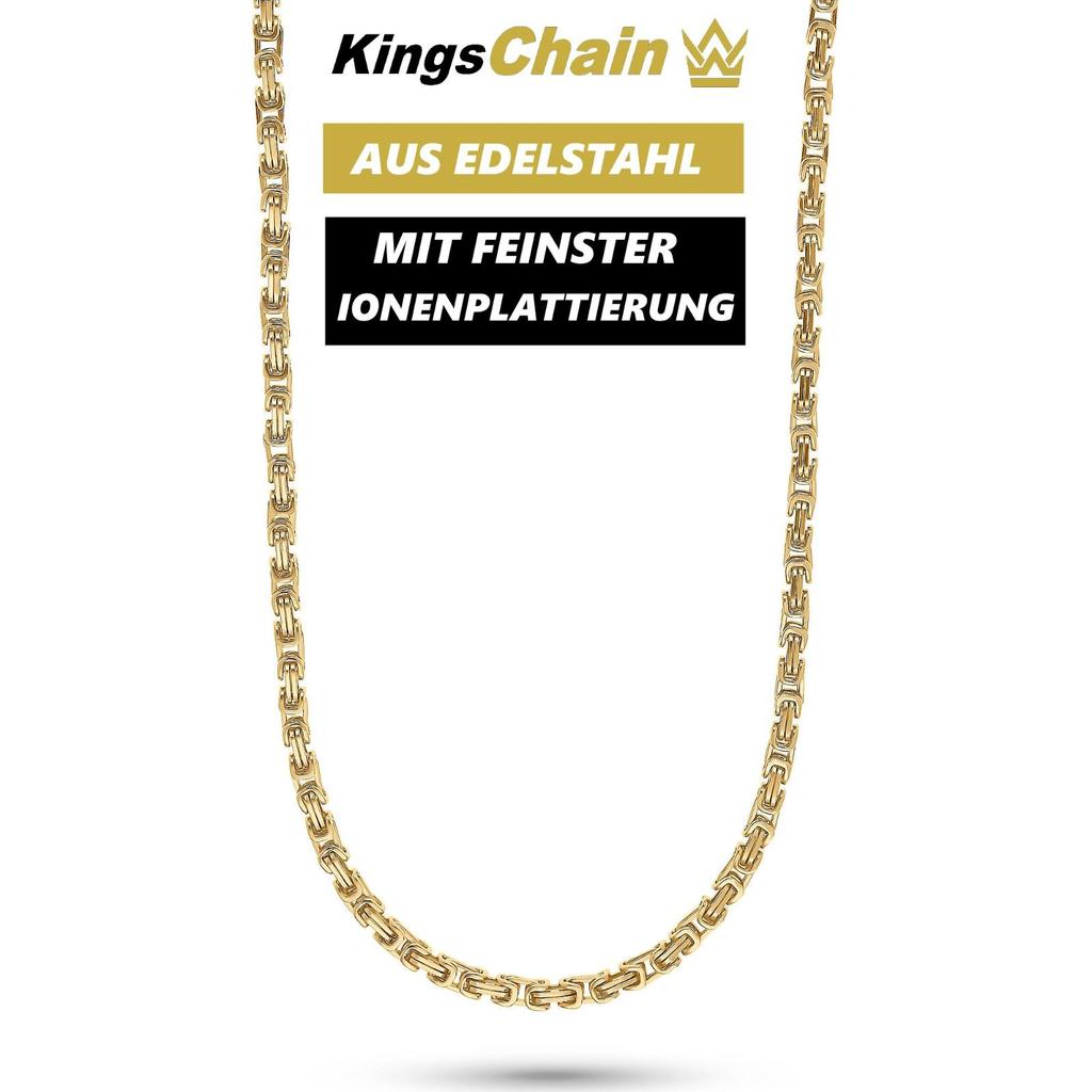 Цепь KingsChain изготовлена из высококачественной нержавеющей стали и устойчива к коррозии.. Благодаря ионному покрытию поверхности ожерелья, оно также устойчиво к внешним воздействиям и сохраняет свой блестящий вид в течение длительного периода времени.. В отличие от серебряных украшений, цепочка не темнеет и поэтому не требует особого ухода.