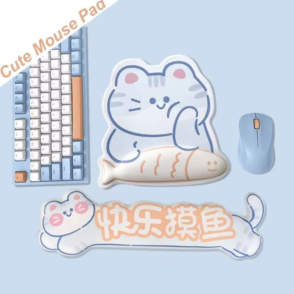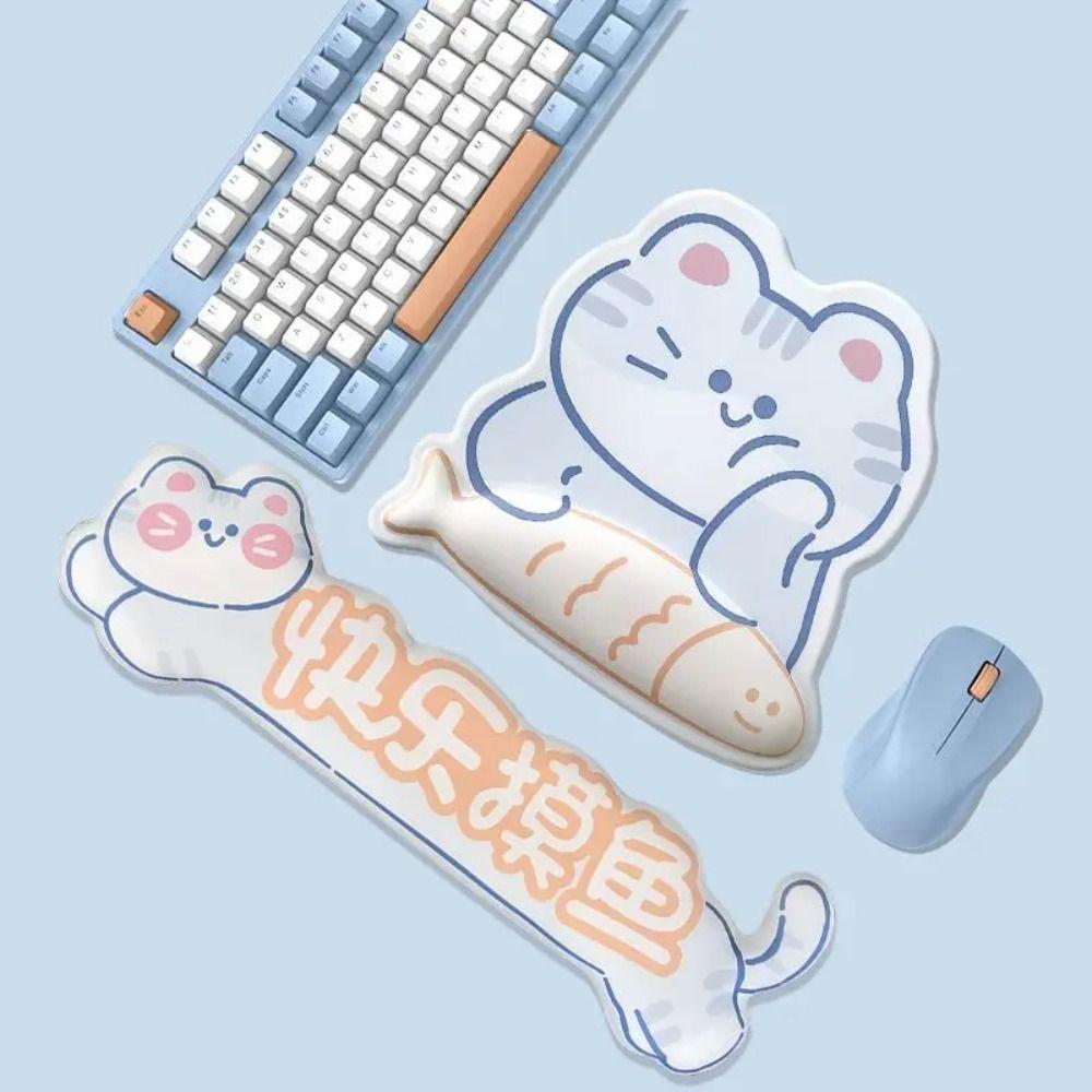 Нескользящий коврик для клавиатуры Cartoon Cat с поддержкой рук, противоскользящий коврик для мыши, коврик для мыши Cat&Fish Home