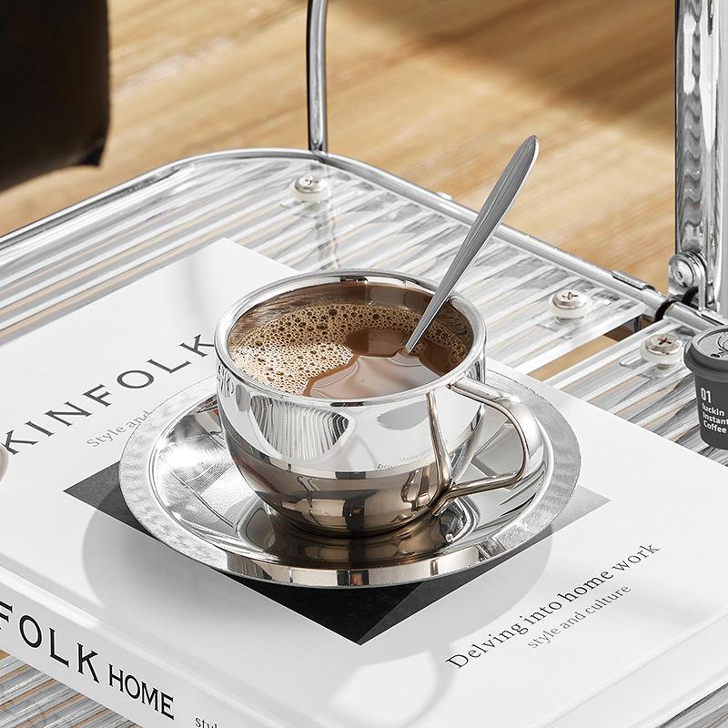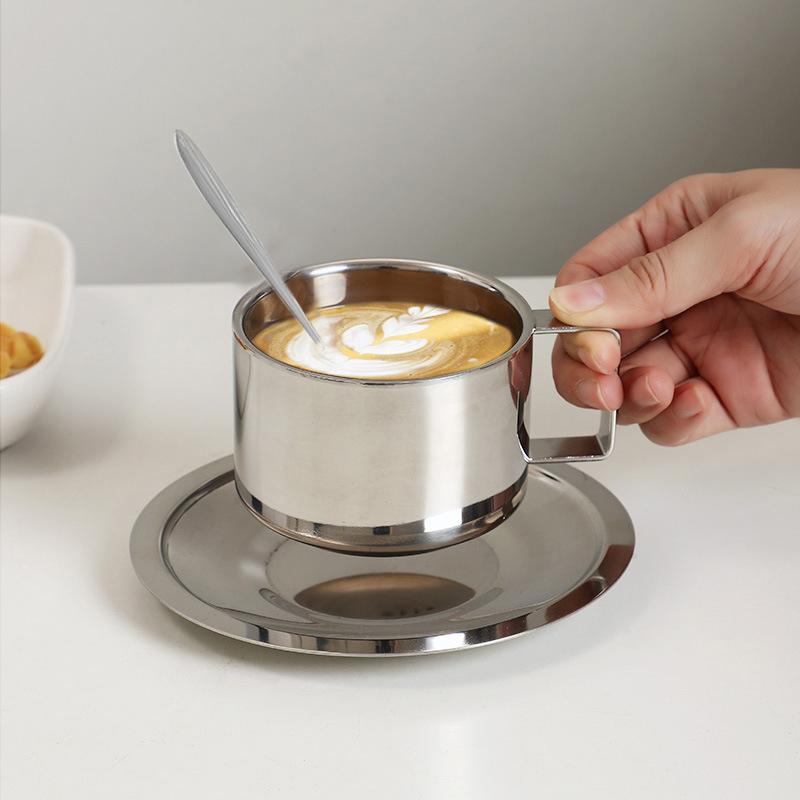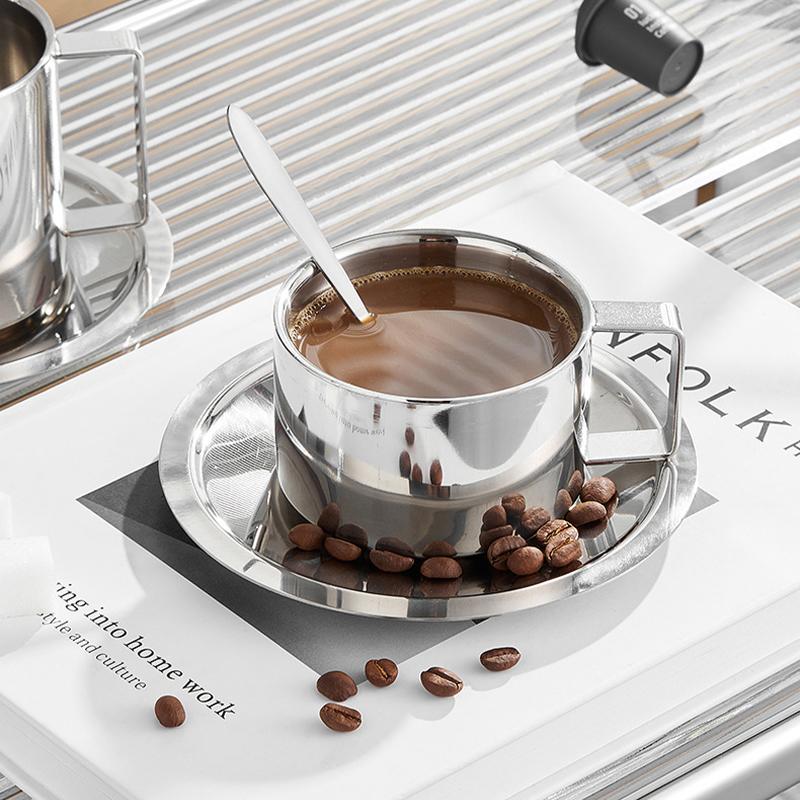 Набор из 3 кружек для кофе Elegant\t\t 304 нержавеющая сталь офисная кружка с подставкой для ложек для дома