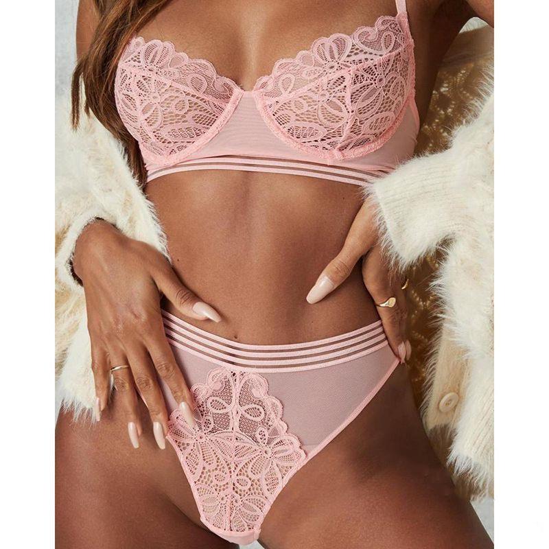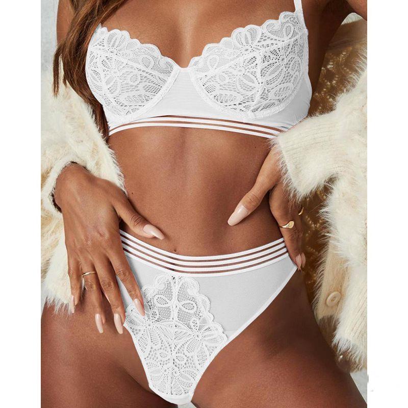 Женский кружевной сетчатый бюстгальтер на бретельках, трусики, комплект женского нижнего белья