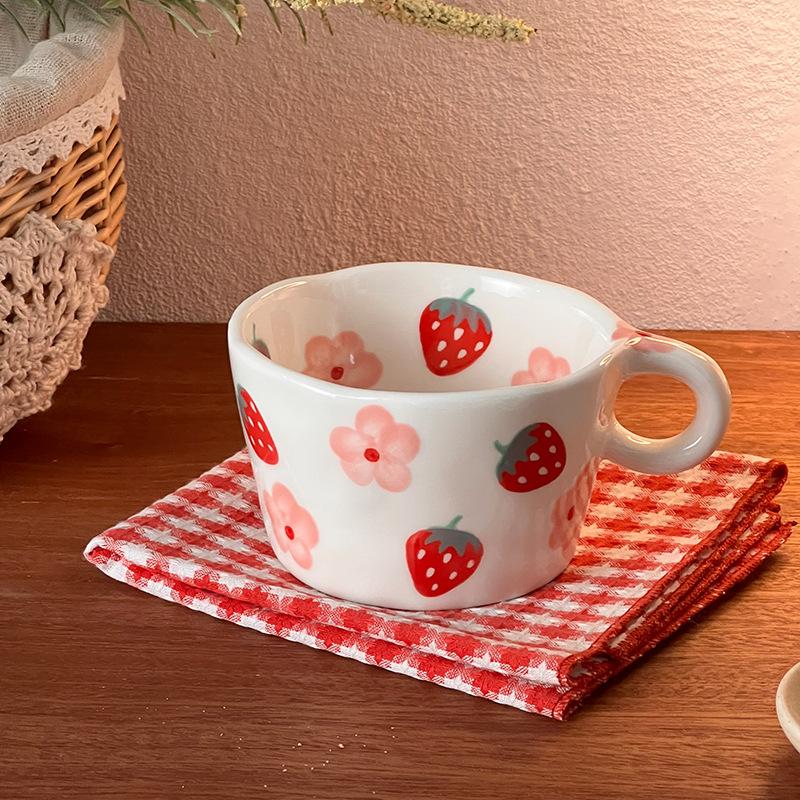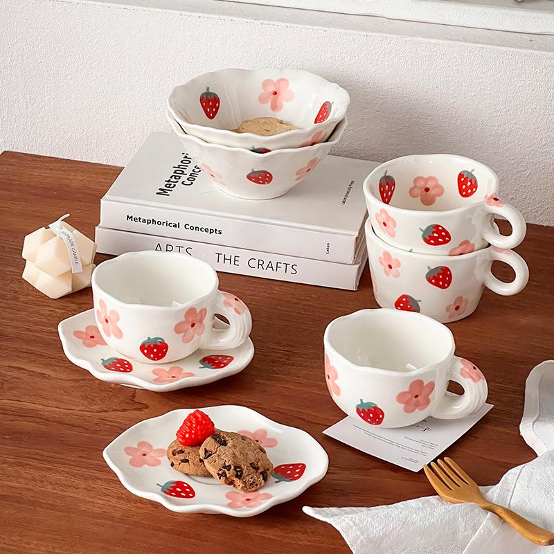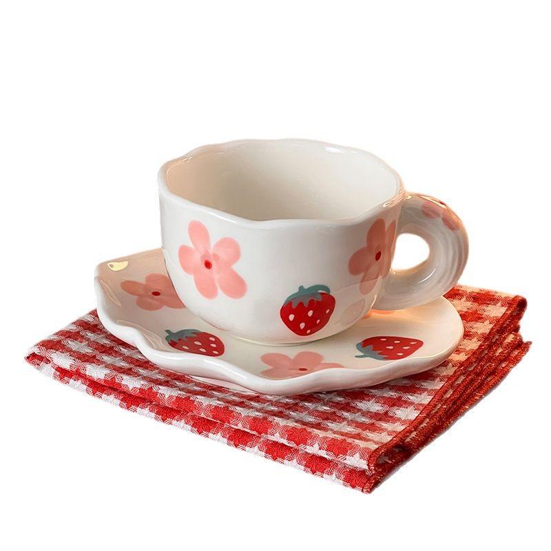 Зарубежный Хит Продаж Расписанная Вручную Клубничная Цветочная Керамическая Кофейная Чашка и Блюдце Набор Высокоценная Чашка Симпатичная Чашка для Воды