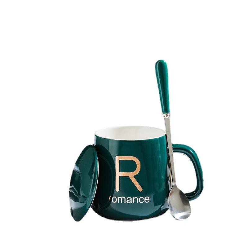 Керамическая кружка Бытовая Печать Креативная Личность Тренд С Крышкой Ложкой Офисная Парная Чашка для Воды