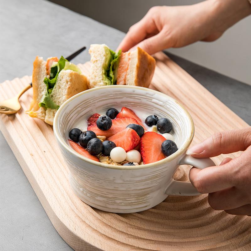 Олдтайм Ретро Большого Диаметра Овсяная Чашка Чашка для Завтрака Ретро Керамическая Чашка Бытовая Чашка для Хлопьев Чашка для Воды