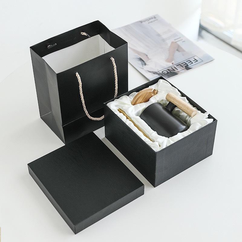 Чашка для разделения чая с деревянной ручкой, керамическая чашка, кофейная чашка с крышкой, ложка, подарочная коробка
