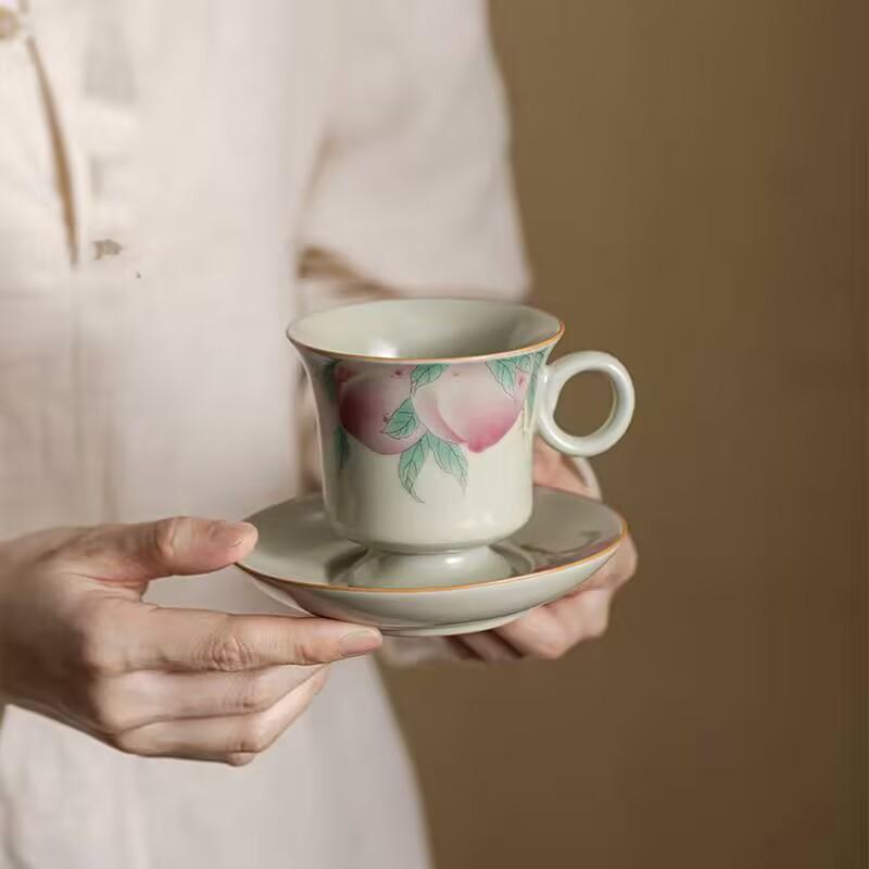Чашка для кофе Ru Kiln Высококачественная Изысканная Высокоценная Керамическая Чашка и Блюдце Нишевый Дизайн Утолщенная Защищающая от Ожогов Чайная Чашка — купить товар онлайн с бесплатной доставкой по всему миру!