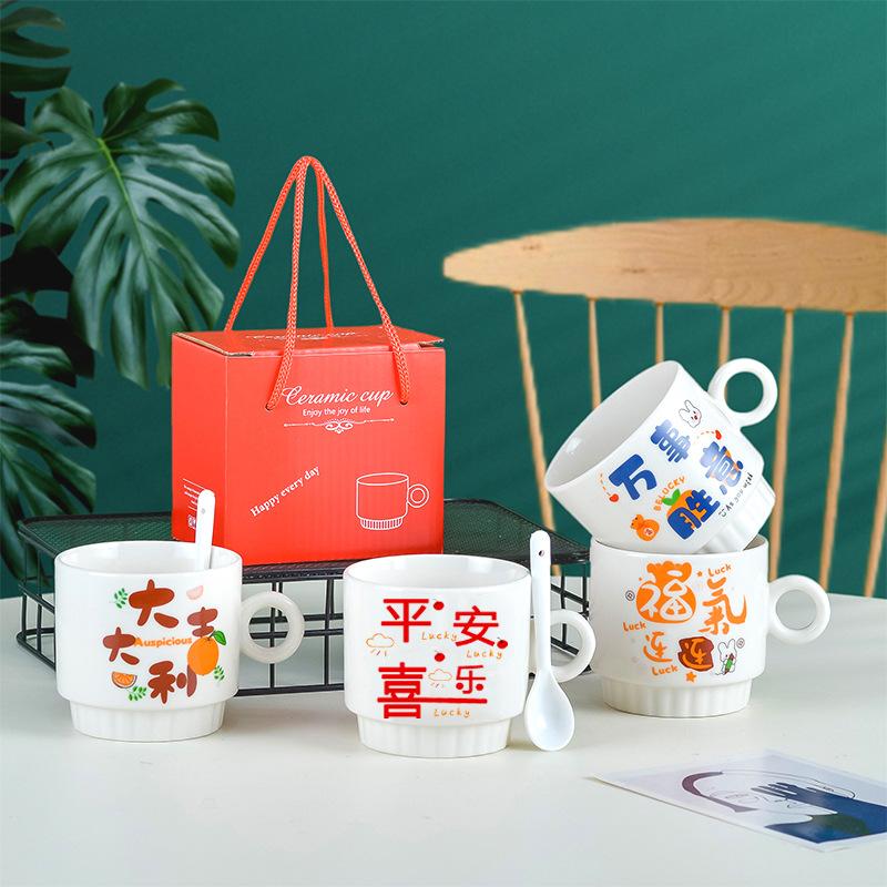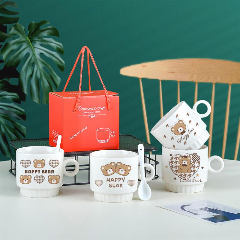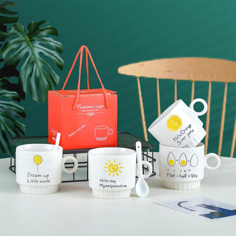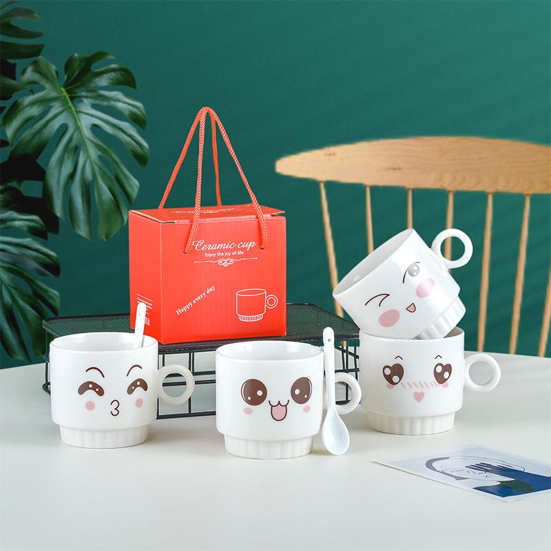 Вместимость: керамическая чашка + пластиковая ложка + коробка, керамическая чашка + керамическая ложка + коробка