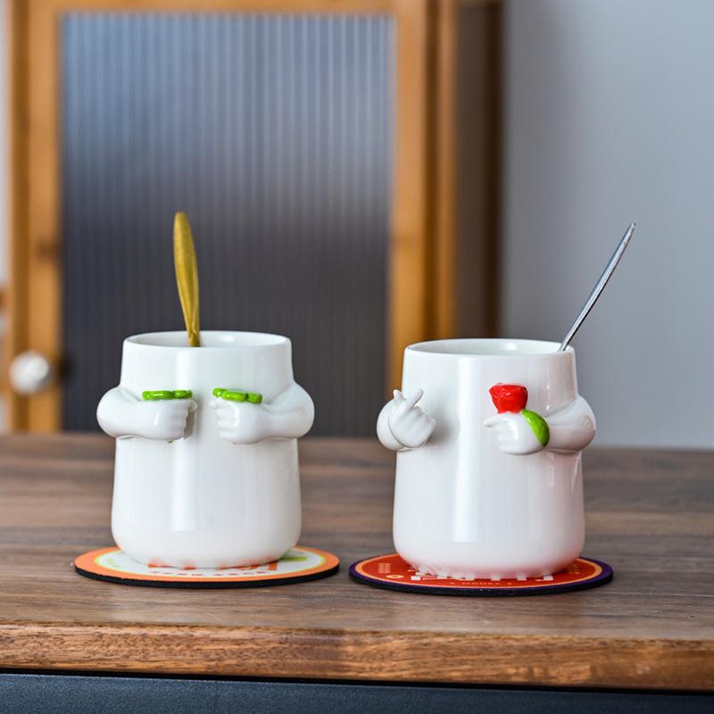 Креативная керамическая чашка для пары, милая чашка для воды для девушки, чашка для кофе для дома и офиса, чашка с сердечком, чашка с клевером на удачу