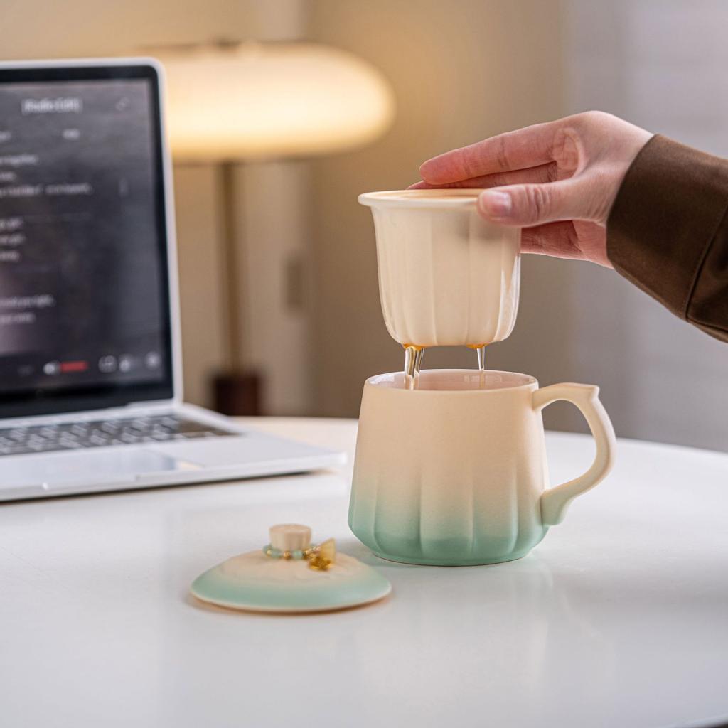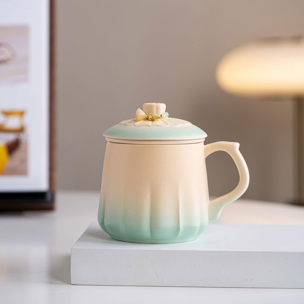 Печная смена Великолепный цветок лотоса Заварочная керамическая чайная чашка Парная чашка Креативная высококлассная чашка для разделения чая Чашка для воды