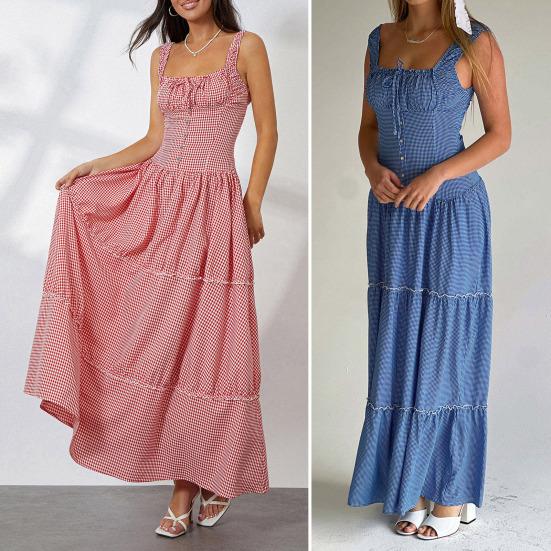 Дополните свой гардероб этим элегантным женским платьем со стильным клетчатым принтом, эластичной грудью, оборкой по низу и подчеркивающим фигуру А-силуэтом.. Эта универсальная пляжная юбка легко сочетается с солнцезащитными очками, соломенными шляпами, аксессуарами, украшениями, сандалиями или туфлями на высоком каблуке, создавая повседневный или изысканный летний образ.. Это платье без рукавов, изготовленное из мягкого и дышащего полиэстера, обеспечивает комфорт и прохладу в теплую погоду..