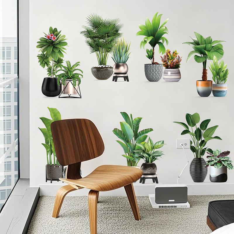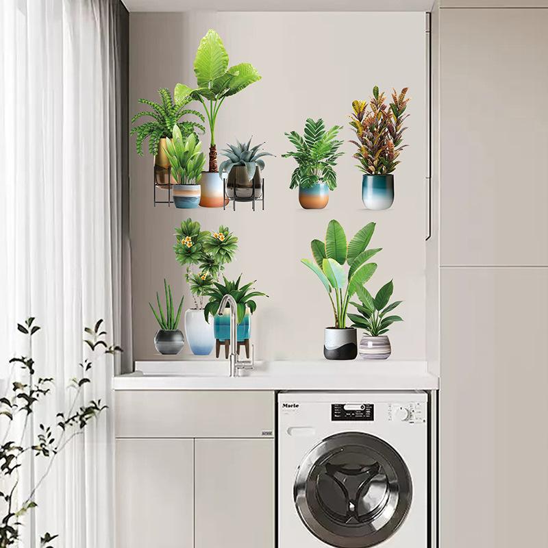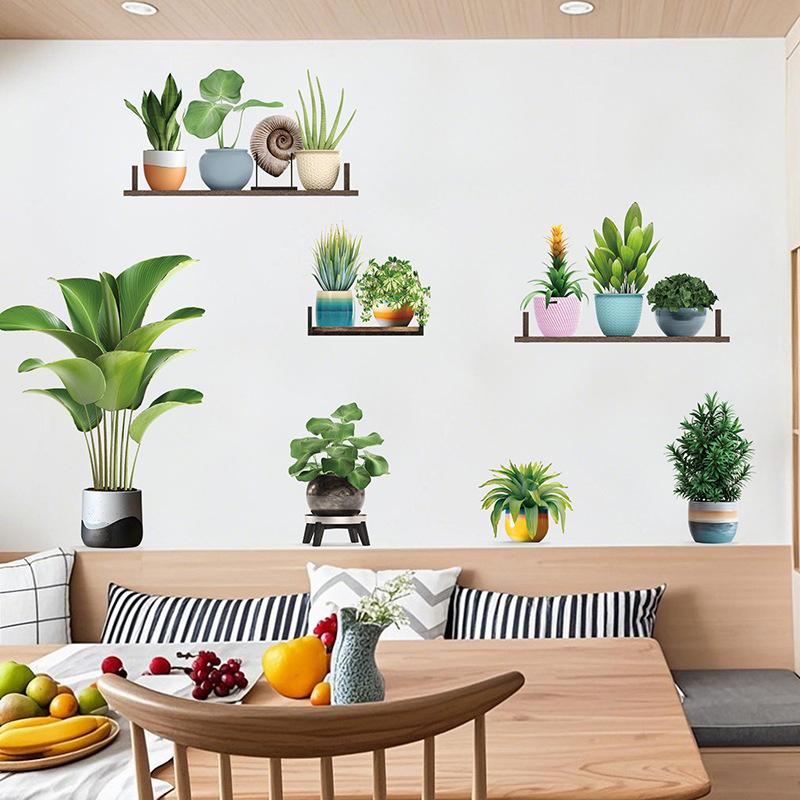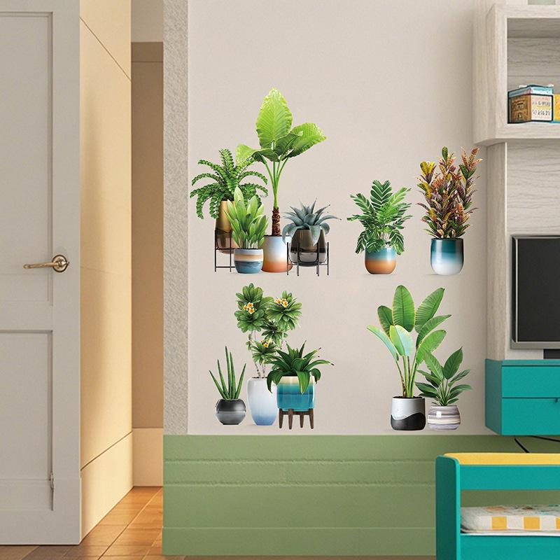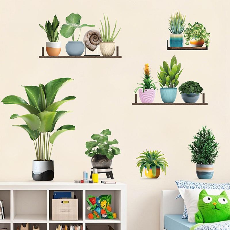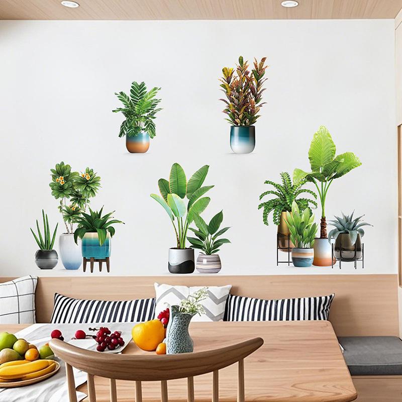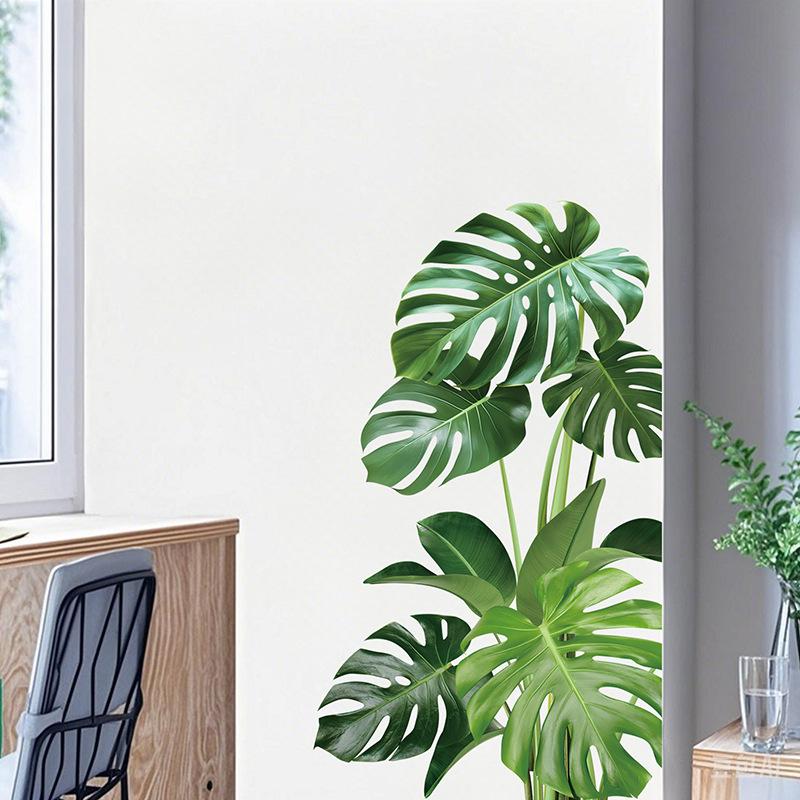 Наклейка на стену с зеленым растением в горшке, черепаха, спина, бамбуковый лист, декор для ресторана, гостиной, балкона, стеклянной двери, ванной комнаты, виниловая наклейка