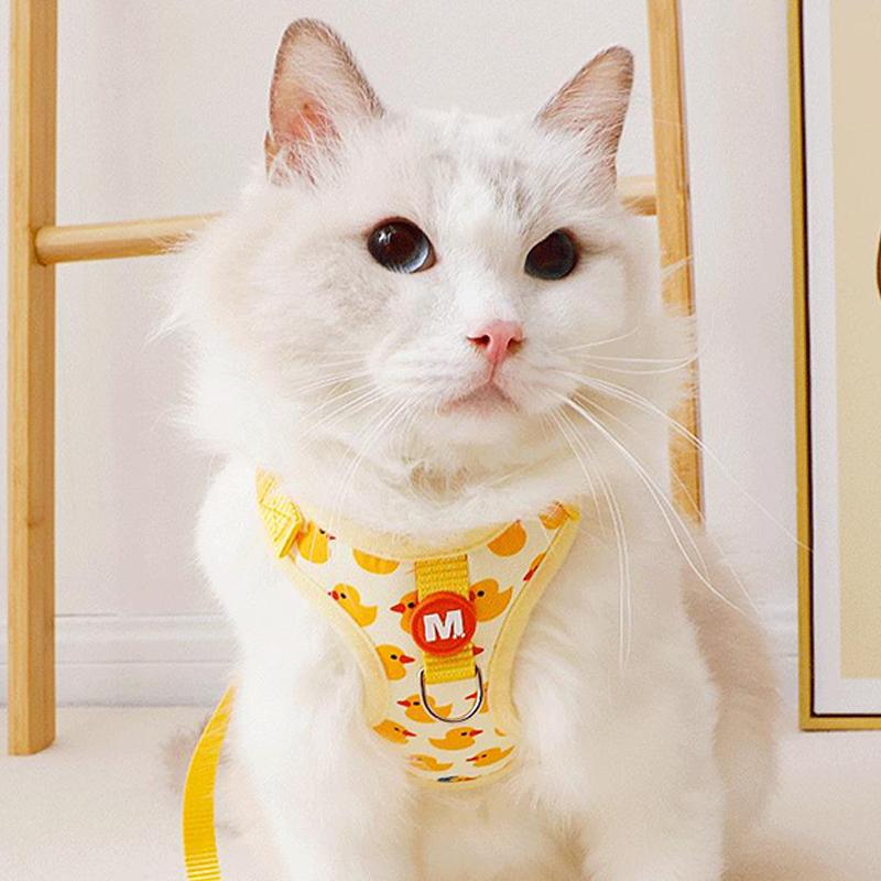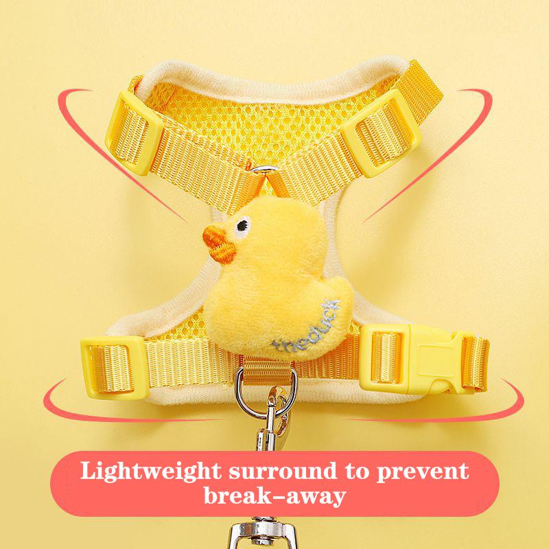 Дышащая сетчатая шлейка для домашних животных, мультяшная маленькая желтая утка, жилет для домашних животных, поводок для маленьких собак, щенков, кошек, регулируемый поводок с пряжкой