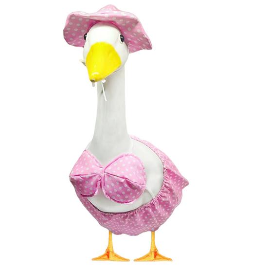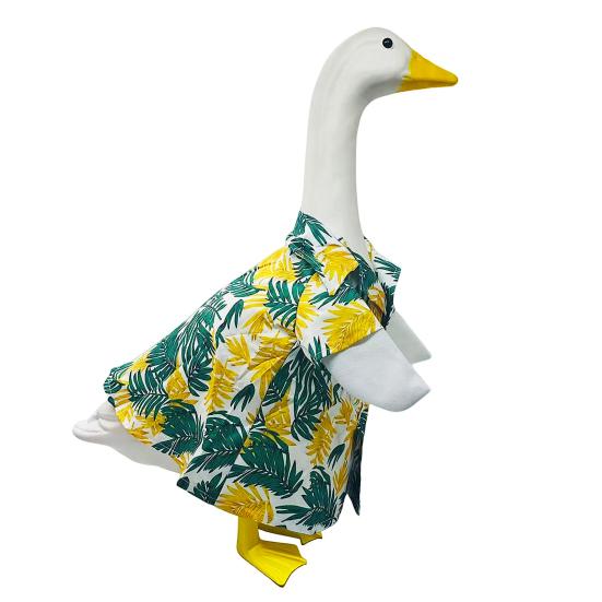Украсьте свое пространство на открытом воздухе с помощью этого очаровательного костюма в гавайском стиле с изображением гуся.. Изготовленный из высококачественных материалов с изысканным мастерством, этот декоративный и милый наряд наверняка привлечет внимание прохожих..