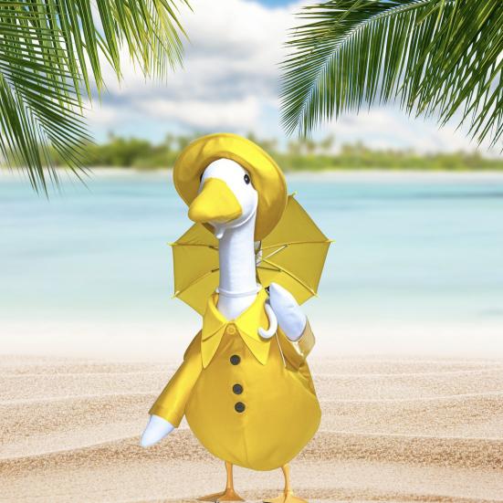 Веселье и праздничное настроение: Создайте праздничную атмосферу на открытом воздухе, используя этот наряд в виде гуся в гавайском стиле.. Его очаровательный внешний вид добавит игривости в обстановку, создав жизнерадостную атмосферу, идеально подходящую для развлечения гостей или просто отдыха на свежем воздухе.
