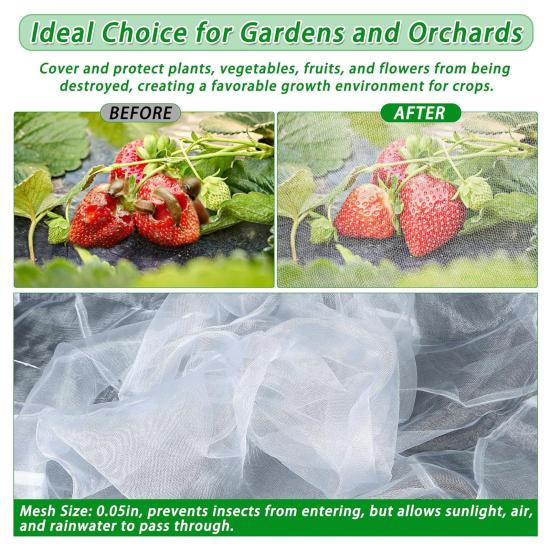 Универсальное покрытие: Идеально подходит для высоких грядок размером 4*2*1 фут, ящиков для рассады и цветочных ящиков.. Тонкая сетка размером 0,05 дюйма не пропускает насекомых, одновременно позволяя солнечному свету, воздуху и дождю питать ваши растения.. Идеально подходит для крытых садов, теплиц, ферм, садов и многого другого.
