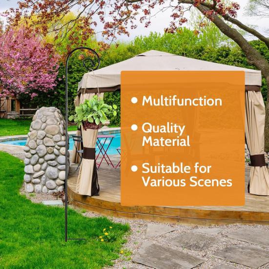Простая установка: Этот садовый крючок, имеющий съемную конструкцию, легко устанавливается, обеспечивая удобство и гибкость для легкого подвешивания различных предметов.