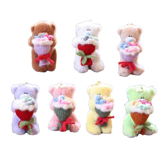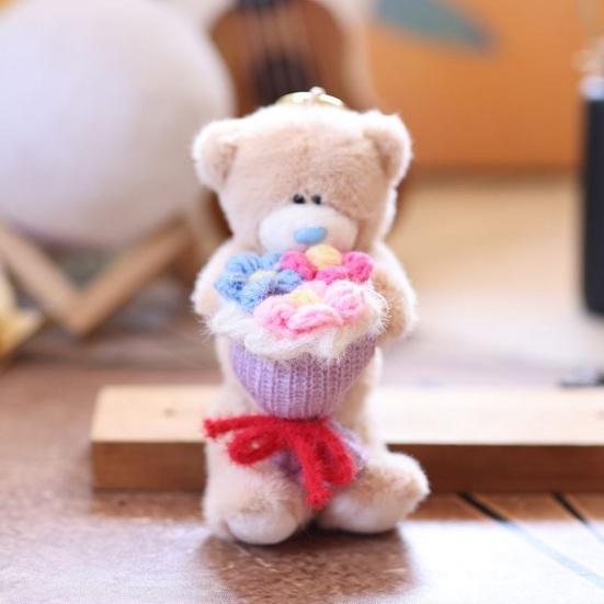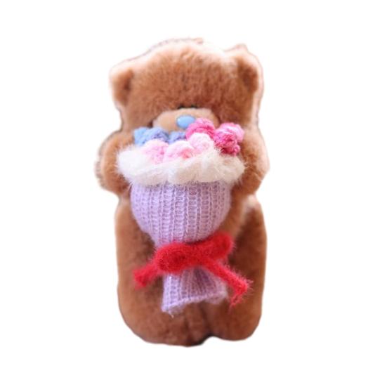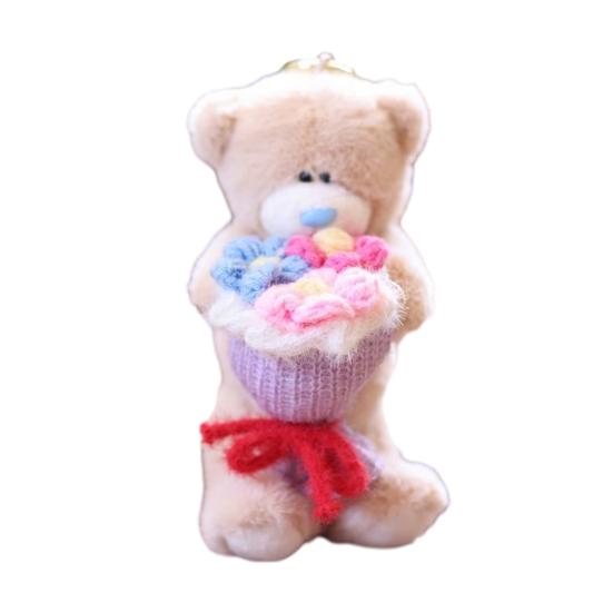 Восхитительный дизайн: Почувствуйте причудливое очарование медведя, держащего букет, с помощью этой плюшевой подвески.. Очаровательное сочетание мягких текстур и очаровательной эстетики создает ощущение уюта, делая его приятным спутником, куда бы вы ни пошли.