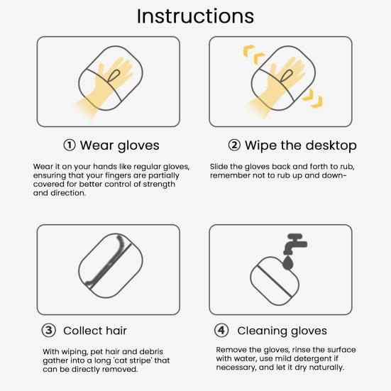 Электростатическая эпиляция: Благодаря передовым технологиям эти перчатки легко удаляют шерсть домашних животных с помощью потирающих движений, обеспечивая простое решение проблем, связанных с шерстью, а также способствуя экологической устойчивости и возможности повторного использования.
